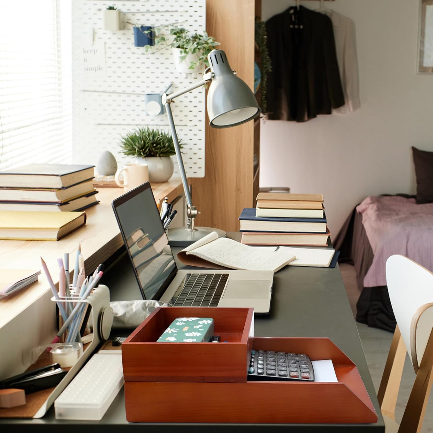 Desk Organizer Letter Tray Set of 2, Magnetic Wooden Tabletop Desktop for Storage Paper Letter Folders Notebooks Copy Print, Workspace Holder, Office Supplies, Keep Stationery Saver-Brown