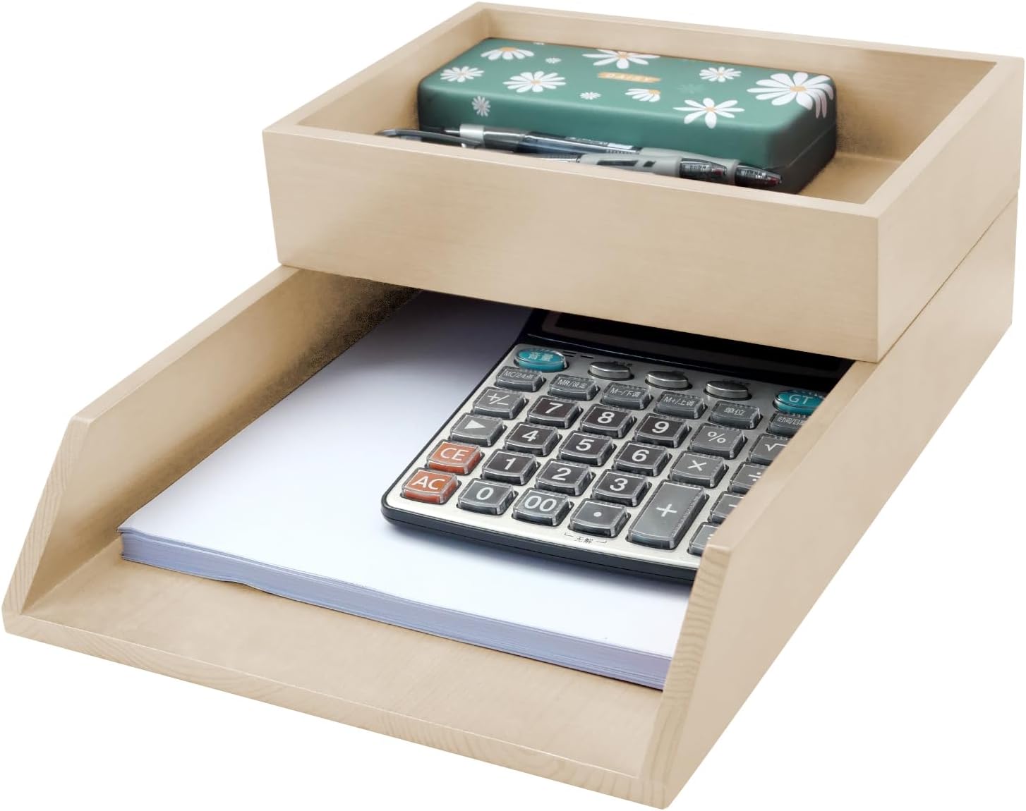 - Suitable Size: The size of the lower layer is 13*9.4*2.36 inch, and the larger space can meet the storage needs of various items. The upper layer is 9.4*6.7*2.1 inch in size, which is suitable for placing small stationery. Such a size design will not take up too much space whether it is placed on a large office desk or a small home work area, and it can also effectively classify and store items.