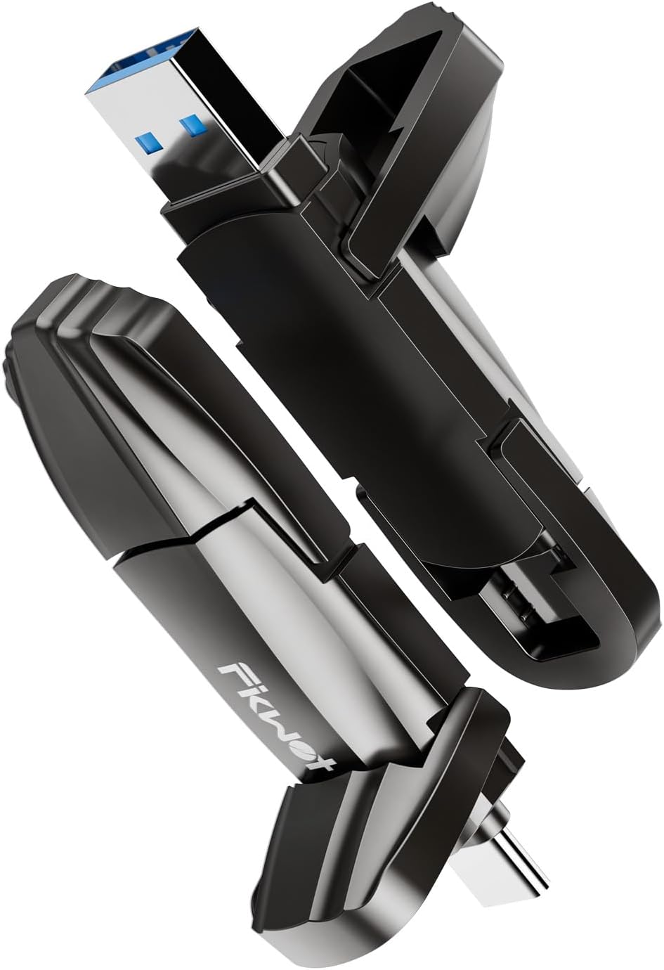 External SSD USB Flash Drive 256GB, Up to 550MB/s 2-in-1 Type C+ USB A USB3.2 Gen2 Solid State Thumb Drive SSD Stick for iPhone 15/16/Android/Windows/Mac/PC/Laptops