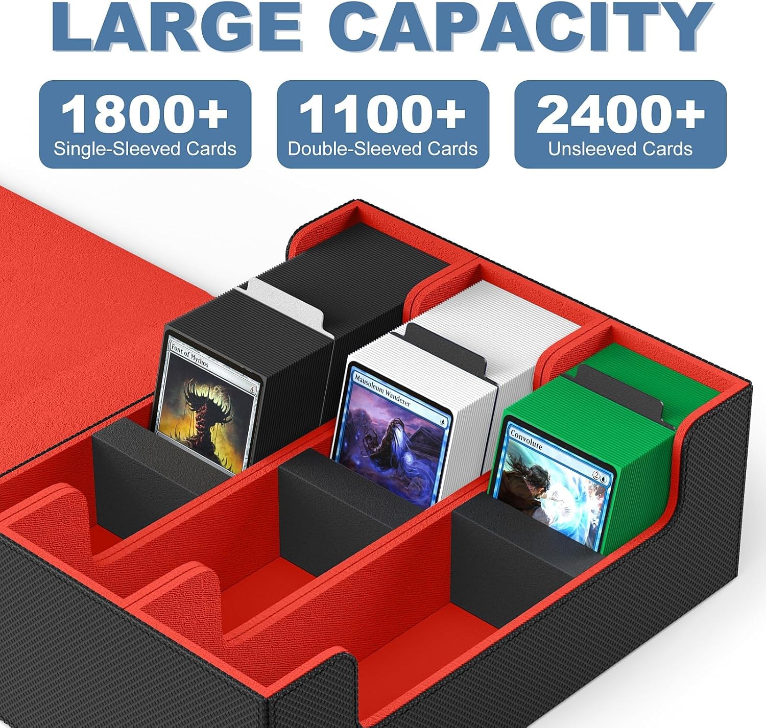 Mlikero Card Deck Case, 1800+ Trading Card Storage Box with 10 Dividers and 3 Foam Stoppers, Leather Magnetic Closure Commander Deck Box Fit for YuGiOh, MTG and Sport Cards(Black&Red)
