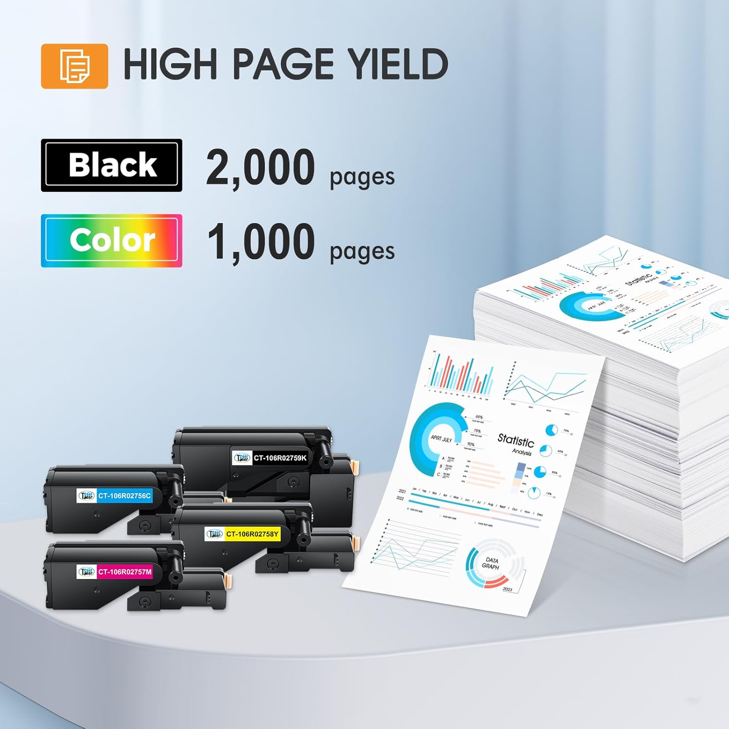 - Page Yield: 2,000 pages per black 6022 toner cartridge & 1,000 pages per color 6022 toner cartridges (Letter/A4, at 5% coverage)