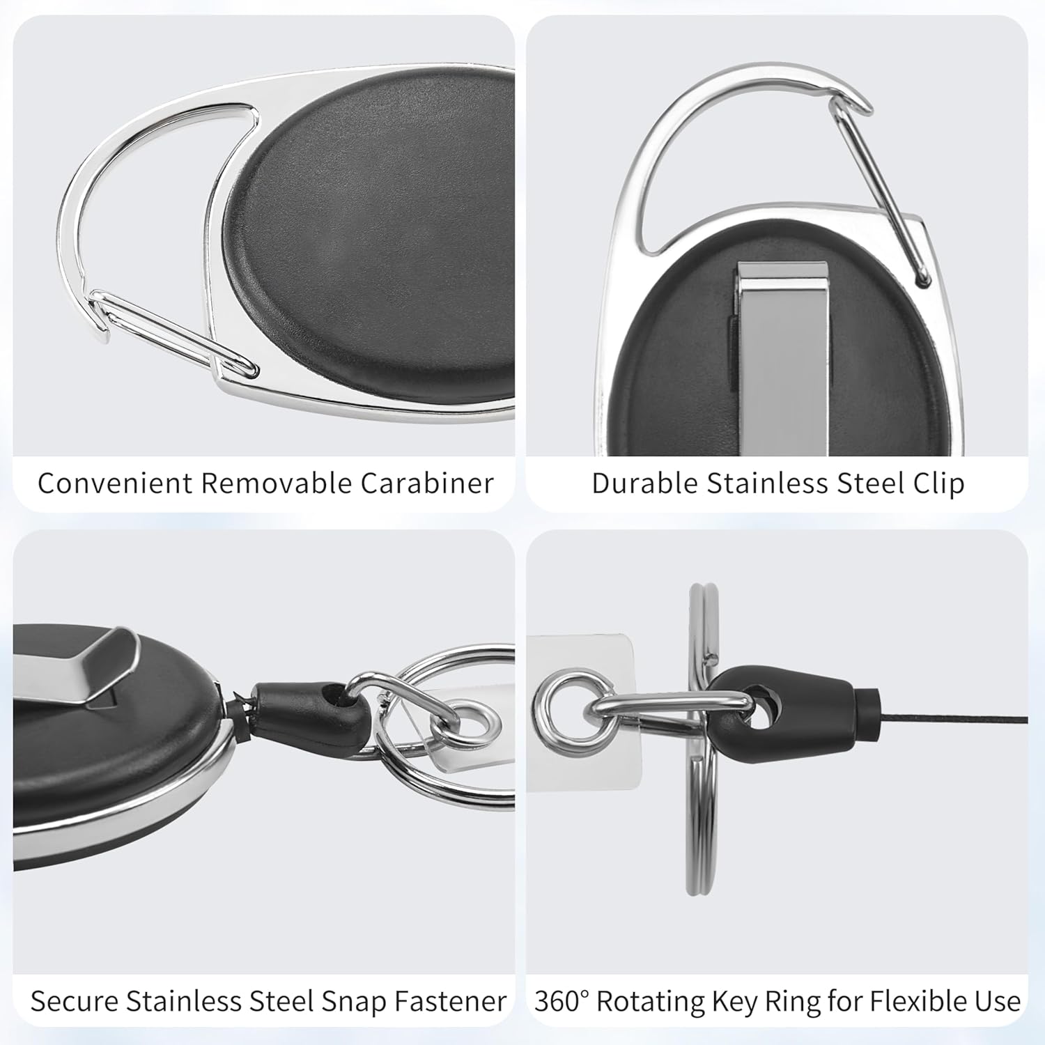 - Smooth Retraction, Easy Access: The 25-inch (64cm) extra-long retractable cord makes swiping cards and unlocking doors effortless—no need to remove your badge constantly. Equipped with a spring clip and a belt clip, it can be firmly attached to collars, belts, pockets, or backpacks, making it more convenient to carry.