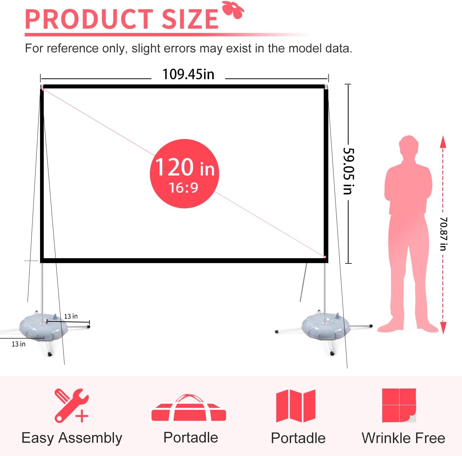 Projector Screen with Stand 120 inch: Foldable and Portable Projection Screen 16:9 4K HD Wrinkle-Free Lightweight Movie Screen with Carry BagHome Theater Backyard Cinema