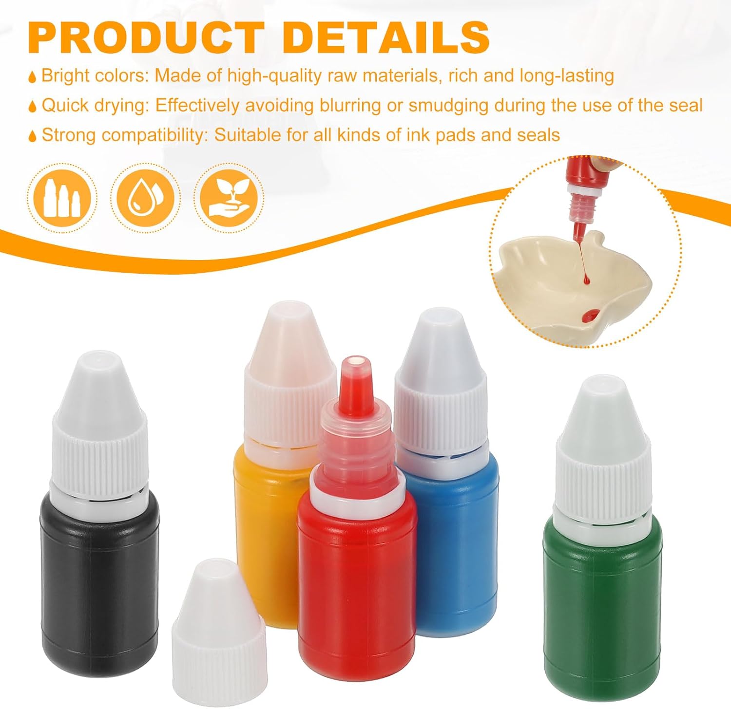 - Advantage: Bright colors: Made of good quality raw materials, the colors are rich and long-lasting, which can add a unique color charm to your seal; Quick drying: The ink dries quickly, effectively avoiding smudging during the use of the seal; Strong compatibility: Suitable for all kinds of photosensitive seals, whether for personal or commercial use, it can meet your needs.