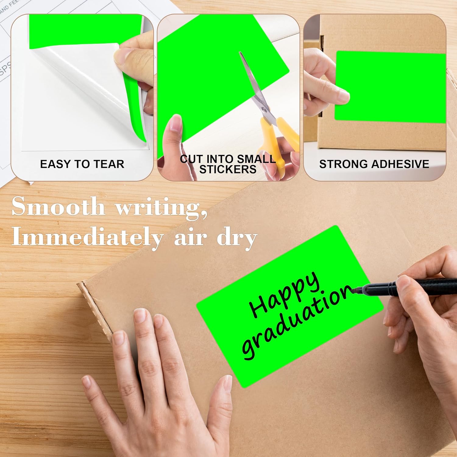 - These square label stickers permanent adhesive label are easy to use, tear off the dotted line of the color box and pull the rectangle stickers from box, what you need is just peel it and then stick it!