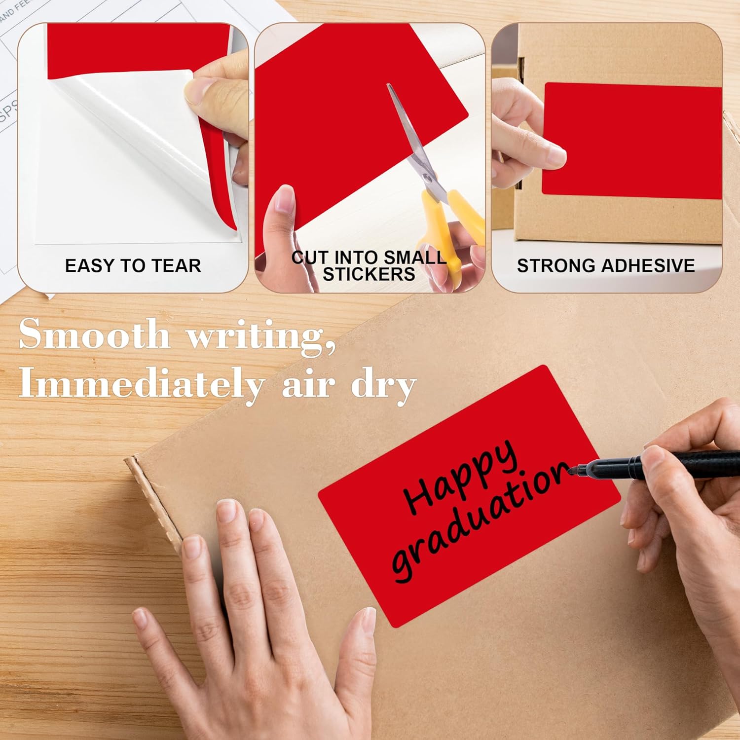 - These square label stickers permanent adhesive label are easy to use, tear off the dotted line of the color box and pull the rectangle stickers from box, what you need is just peel it and then stick it!