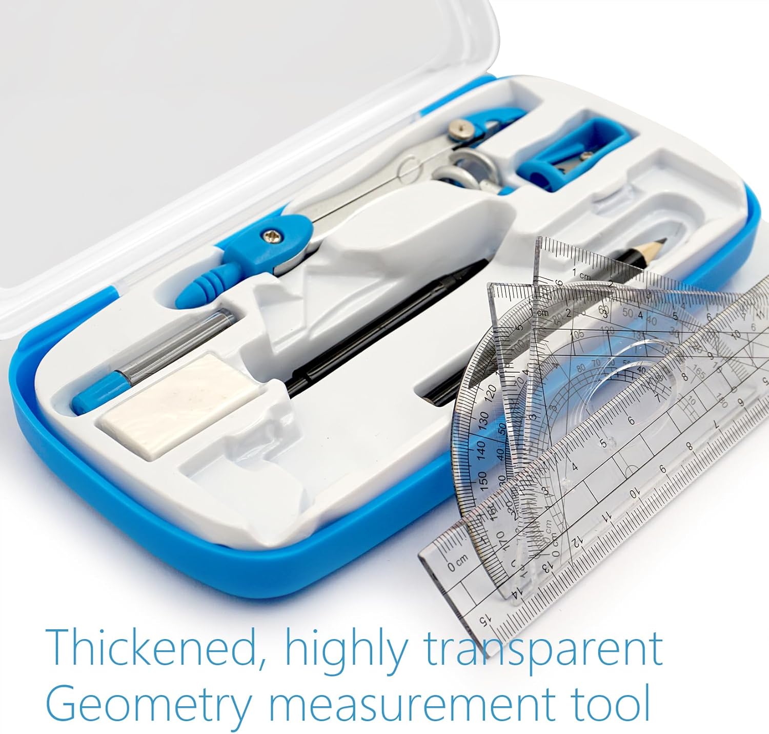- Akuoly Drafting Compass Kit Starter Math Set Featuring Geometry Compass, Protractor, Set Squares, and Ruler – for School Graders Math Study with Every Piece Compact in Carrying Case, Classic Blue