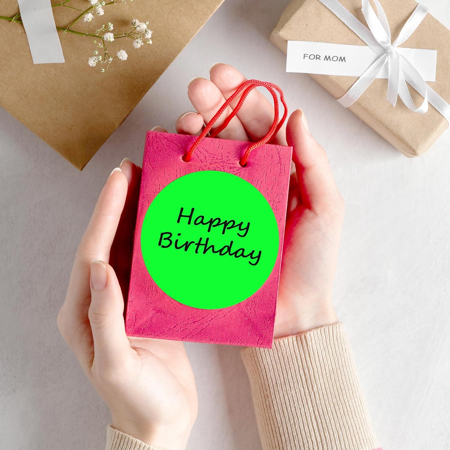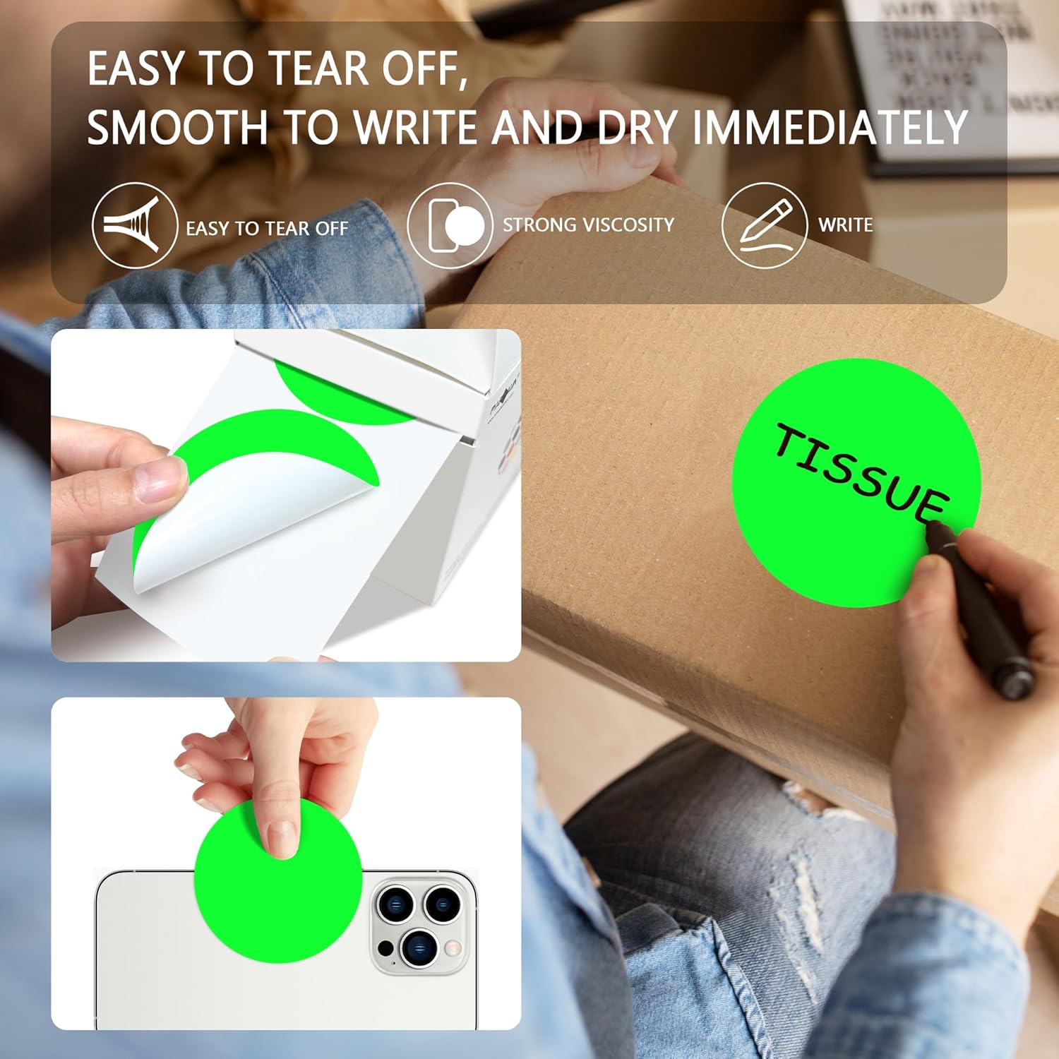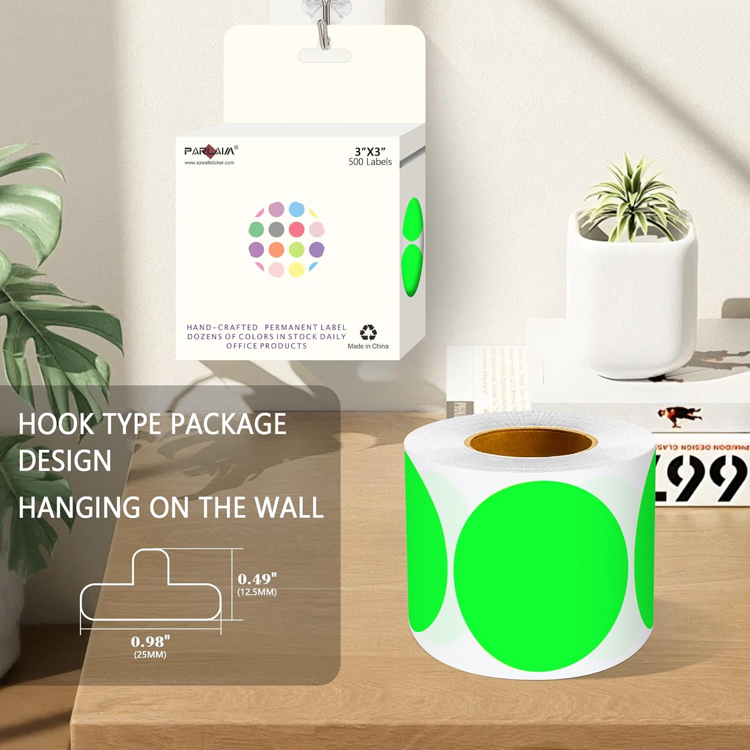 - The package includes 4 rolls 2000PCS 3x3 Inch round diameter fluorescent green color-code dots stickers, each roll sticker label in a individual plastic dispenser case and 4 rolls in a larger box.