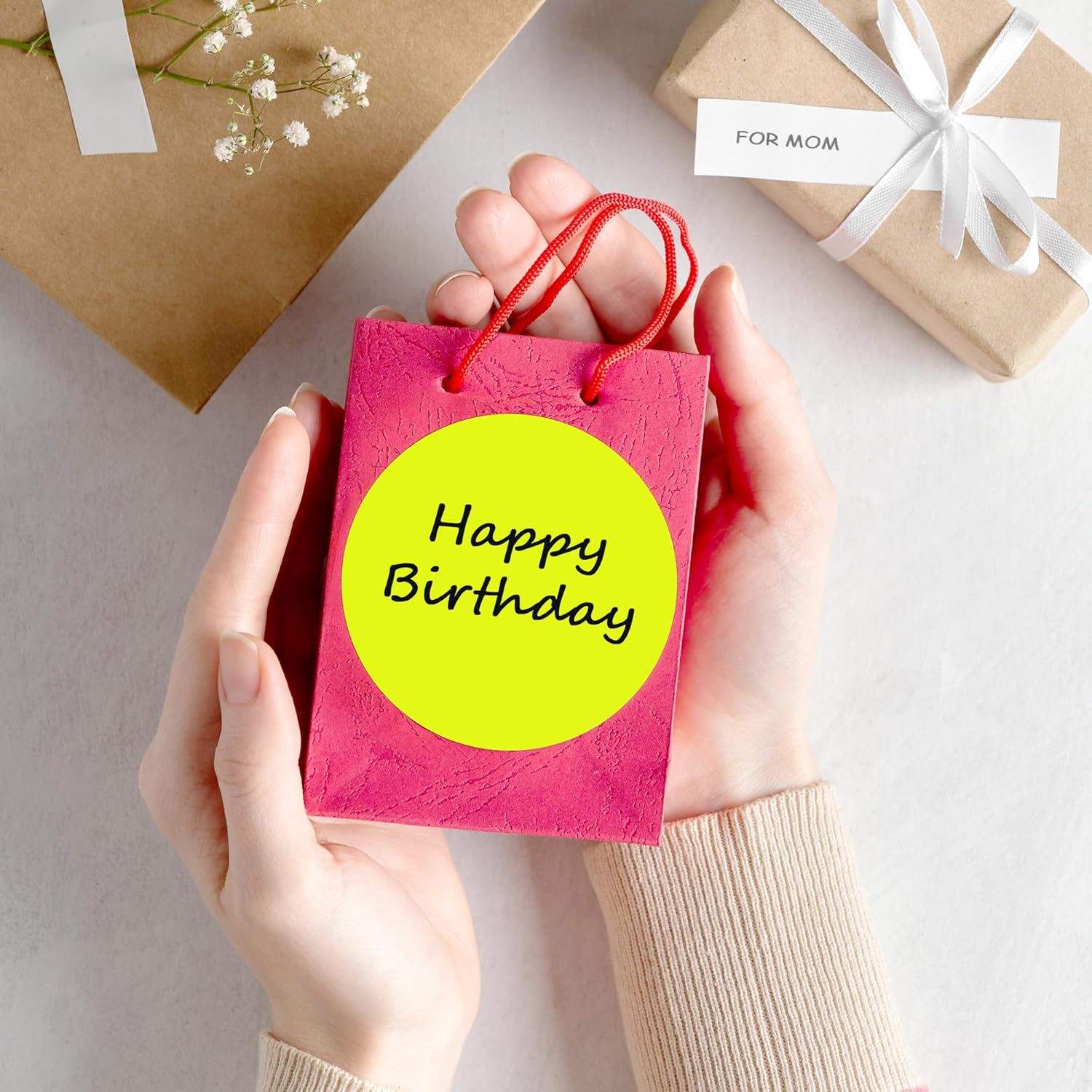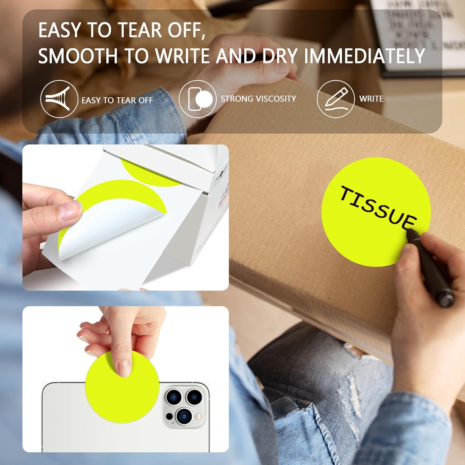 - The package includes 4 rolls 2000PCS 3x3 Inch round diameter fluorescent yellow color-code dots stickers, each roll sticker label in a individual plastic dispenser case and 4 rolls in a larger box.