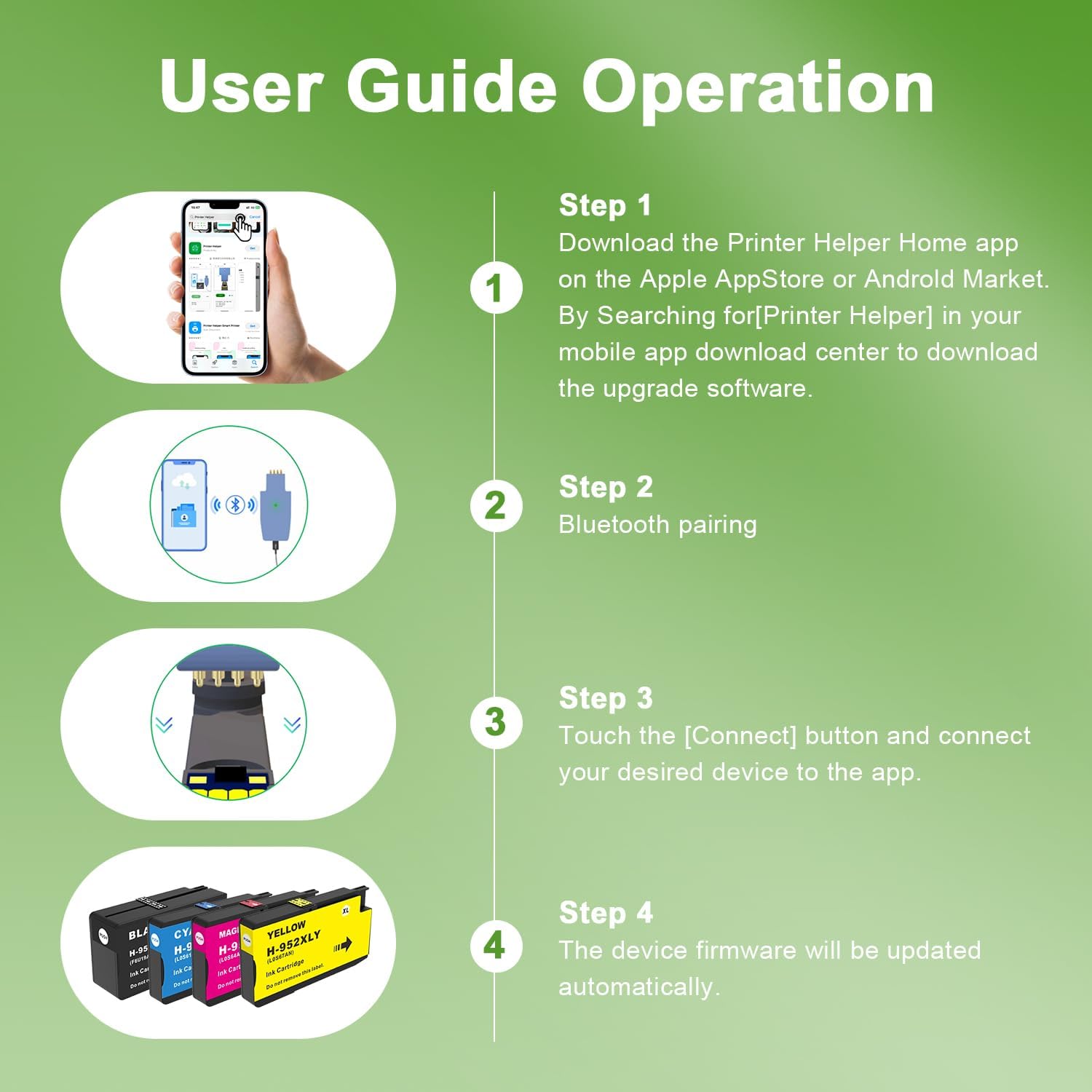 - 【Package Contents】: 1 X 952XL black ink cartridge, 1 X 952XL cyan ink cartridge,1 X 952XL magenta ink cartridge,1 X 952XL yellow ink cartridge,total compatible 952 xl ink cartridges for hp printers 4 Pack + FREE Chip Upgrader – Enjoy 60% Savings, No More Firmware Blocks!