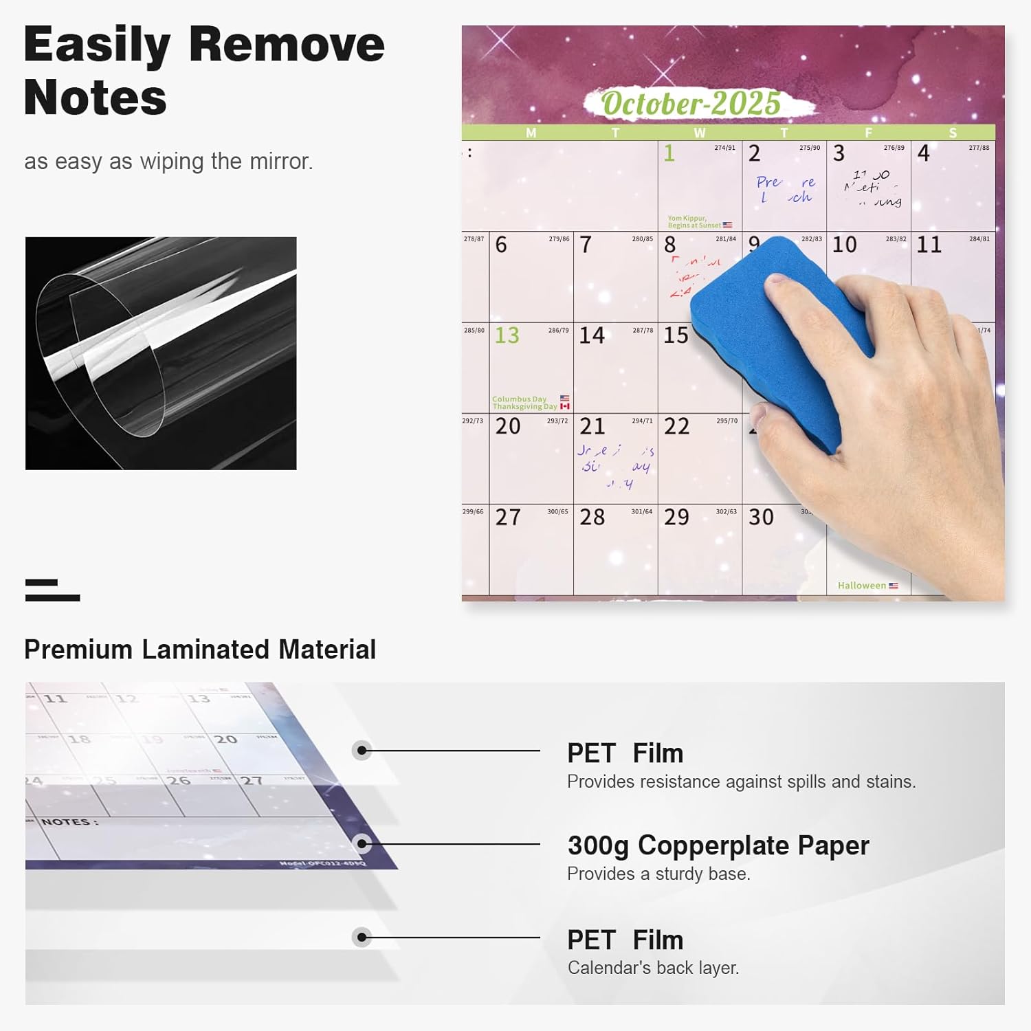 - ✨ Laminated Calendar with Dates: Waterproof wall calendar comes with a mini eraser, four dry-erase markers, 12 push pins, and 10 transparent round stickers. 12 months calendar covers the time range from July 2025 to June 2027, making it perfect for long-term use.