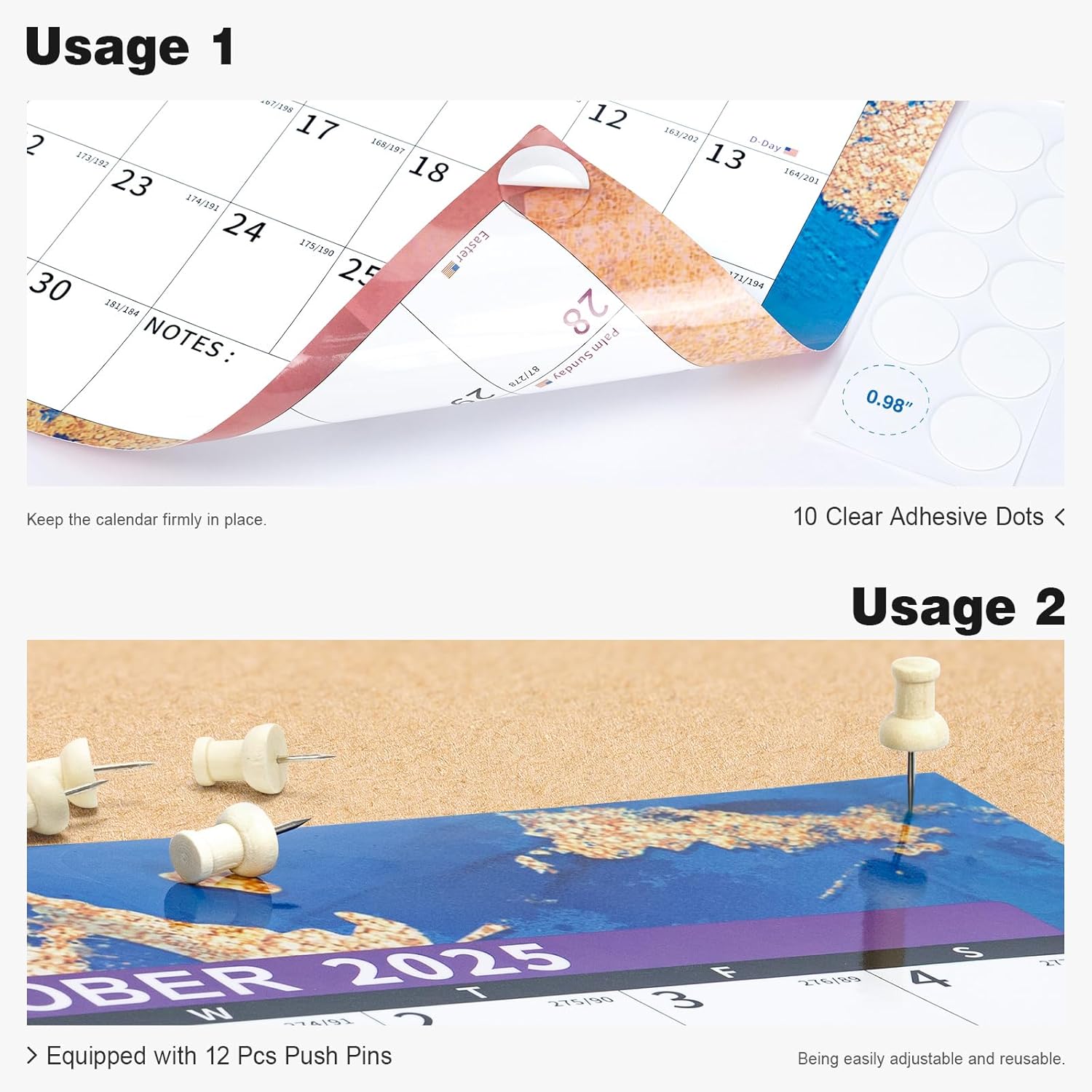 - ✨ Laminated Calendar with Dates: Waterproof wall calendar comes with a mini eraser, four dry-erase markers, 12 push pins, and 10 transparent round stickers. 12 months calendar covers the time range from July 2025 to June 2027, making it perfect for long-term use.