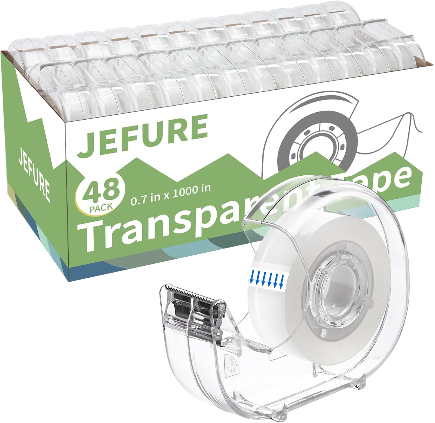 Transparent Tape with Dispenser, 0.7 in x 1000 in Clear Tapes and Refillable Dispensers, Office Tape Rolls with Dispenser Bulk for Craft Jobs, Gift Wrapping, Repairing, Home and School (48)