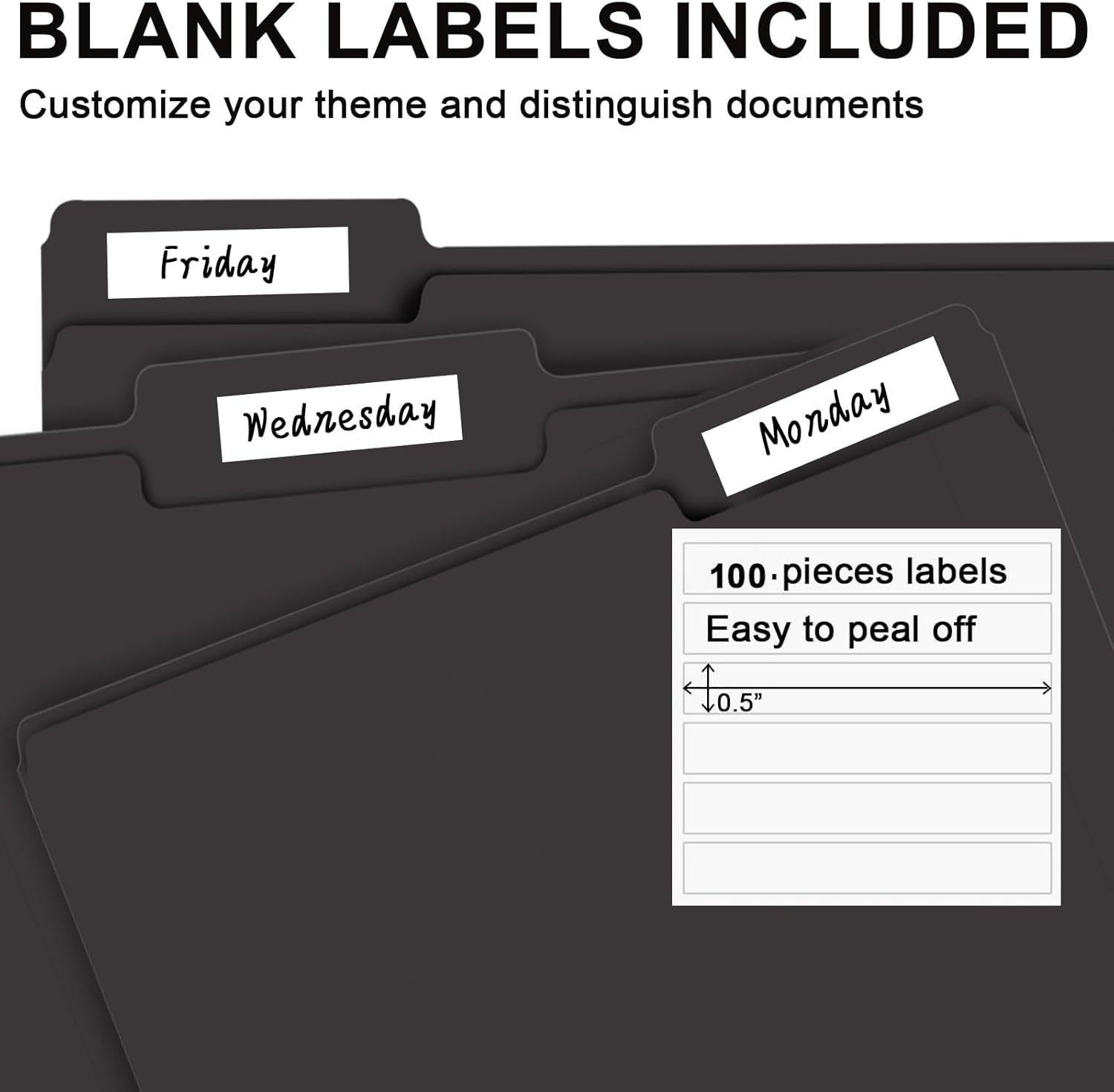 - LETTER SIZE FOLDERS: Black colored file folder (100 pack) for everyday filing and organizing, Fits standard 8.5" ×11" letter size paper or documents