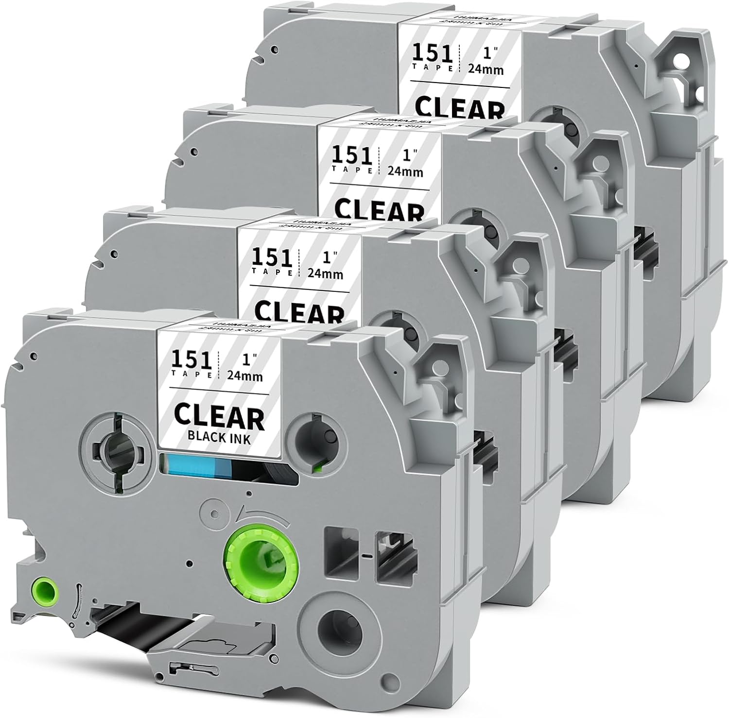 - Packages: 4-Pack 24mm 0.94" clear label tape compatible with Brother tze-151 24mm 0.94 black on clear tape. Color: Black on Clear. Size: 1 inch (24mm 0.94") x 26.2 feet (8m)