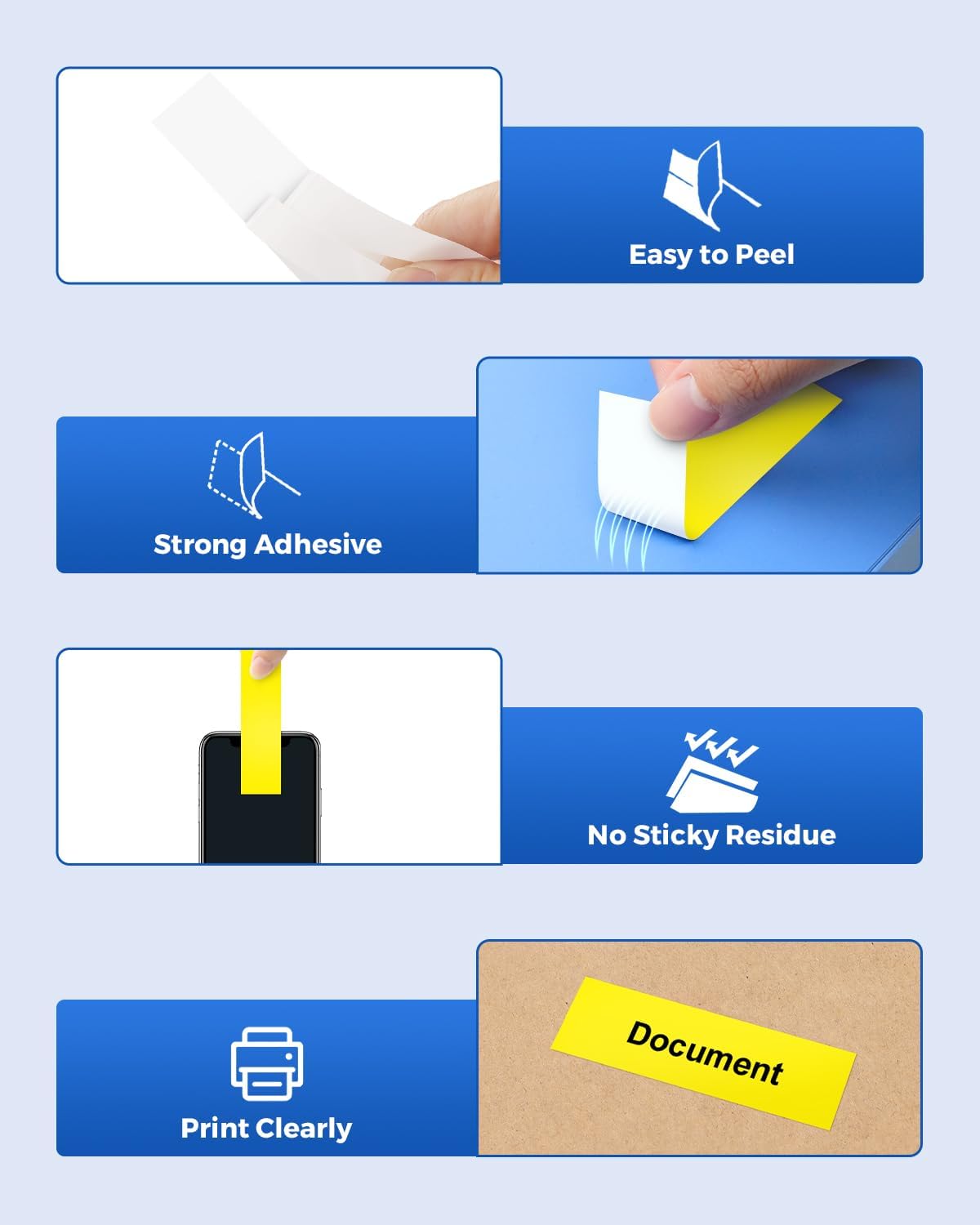 - Features: Our 24mm 0.94" black on yellow label maker tape split design makes the label tape easy to peel and apply, with strong adhesion/waterproof/temperature/oil/abrasion/fading, and reliably sticking to various surfaces