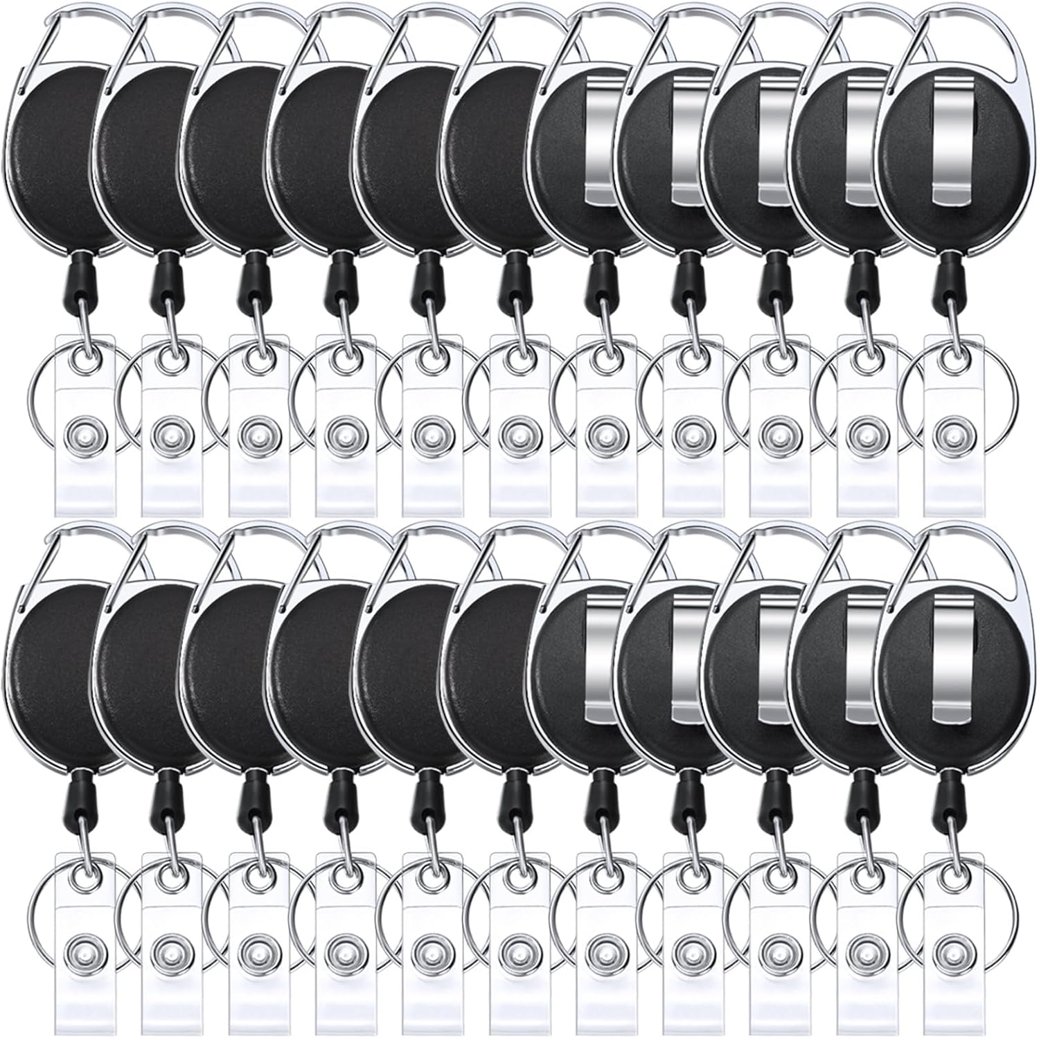 - Package: you will get 20 packs of retractable badge clips, featuring clip, stainless steel key ring, vinyl snap strap and plastic cover, clip attachment for effortlessly and quickly fastening to belt loops, straps, backpacks, bags and more, allow a quick and easy way to scan or swipe your badge