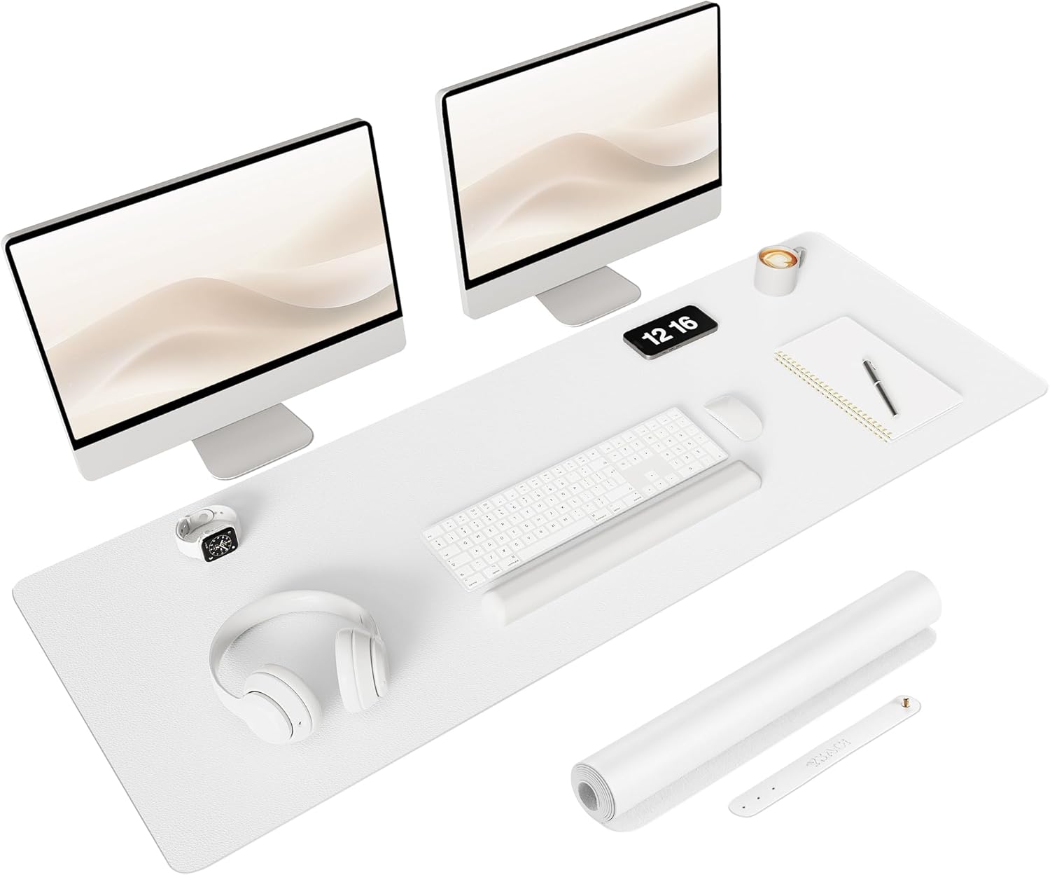 YSAGi Non-Slip Leather Desk Pad Long Size, Waterproof Laptop Computer Desk Keyboard Mat, Table Protector Blotter Mat, Large Mouse Pad for Office/Work/Home/Decor(White, 47" x 17")