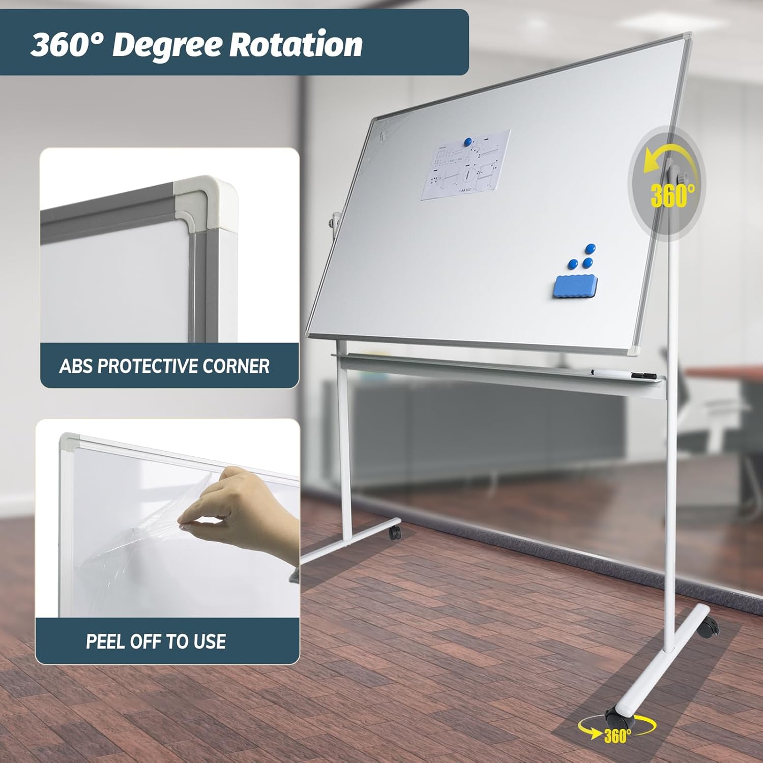 - Double-sided Whiteboard: The dry erase board is double sided and reversible design, press the button and flip the whiteboard to maximize writing space, the buckle can be locked the board in place to maximize stability
