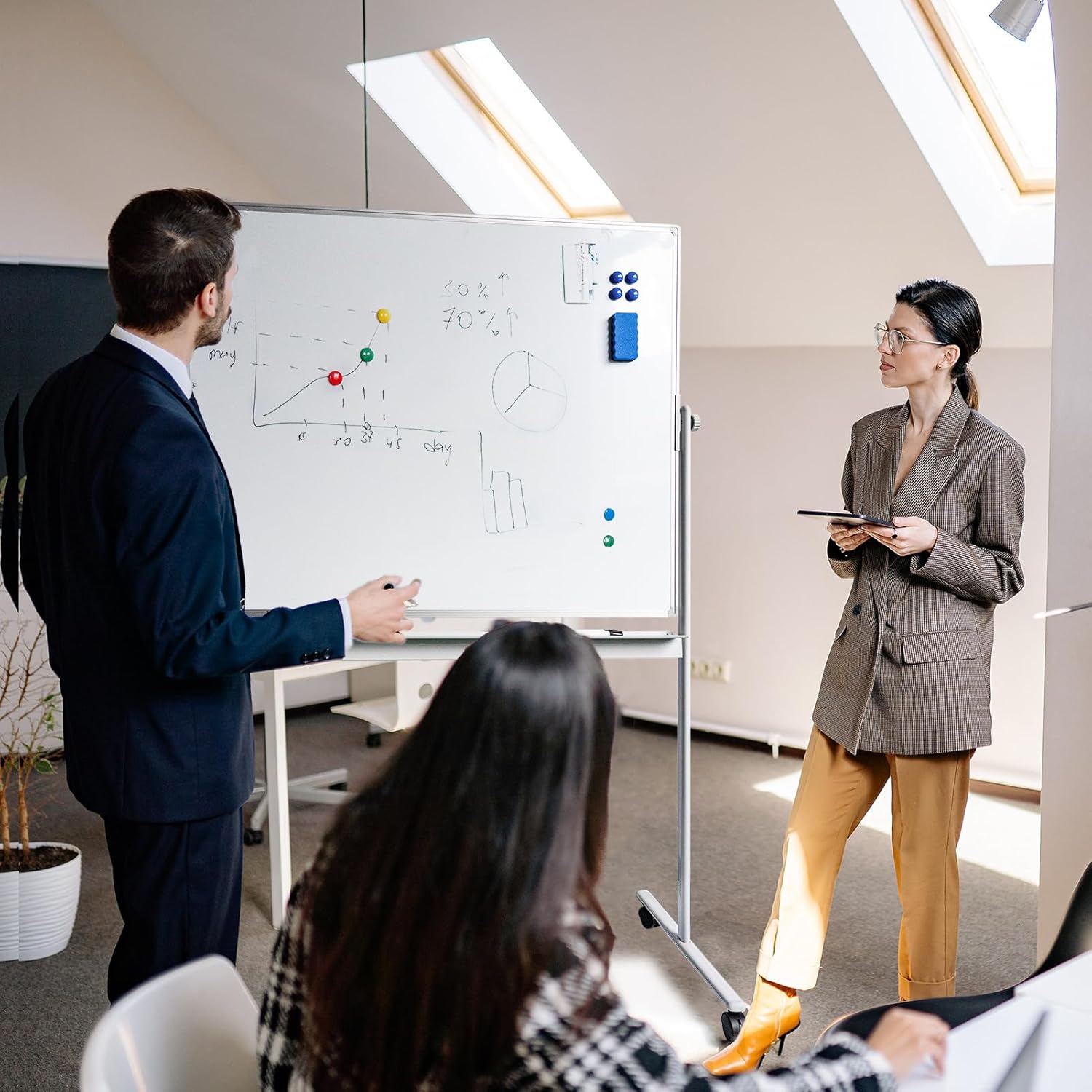 - Easy to Move & Lock: Mobile Whiteboard feature 4 durable 360 degrees caster wheels which have brakes, allow you to easily move this whiteboard and lock it in place, makes your presentation, teaching or training more efficient and orderly.