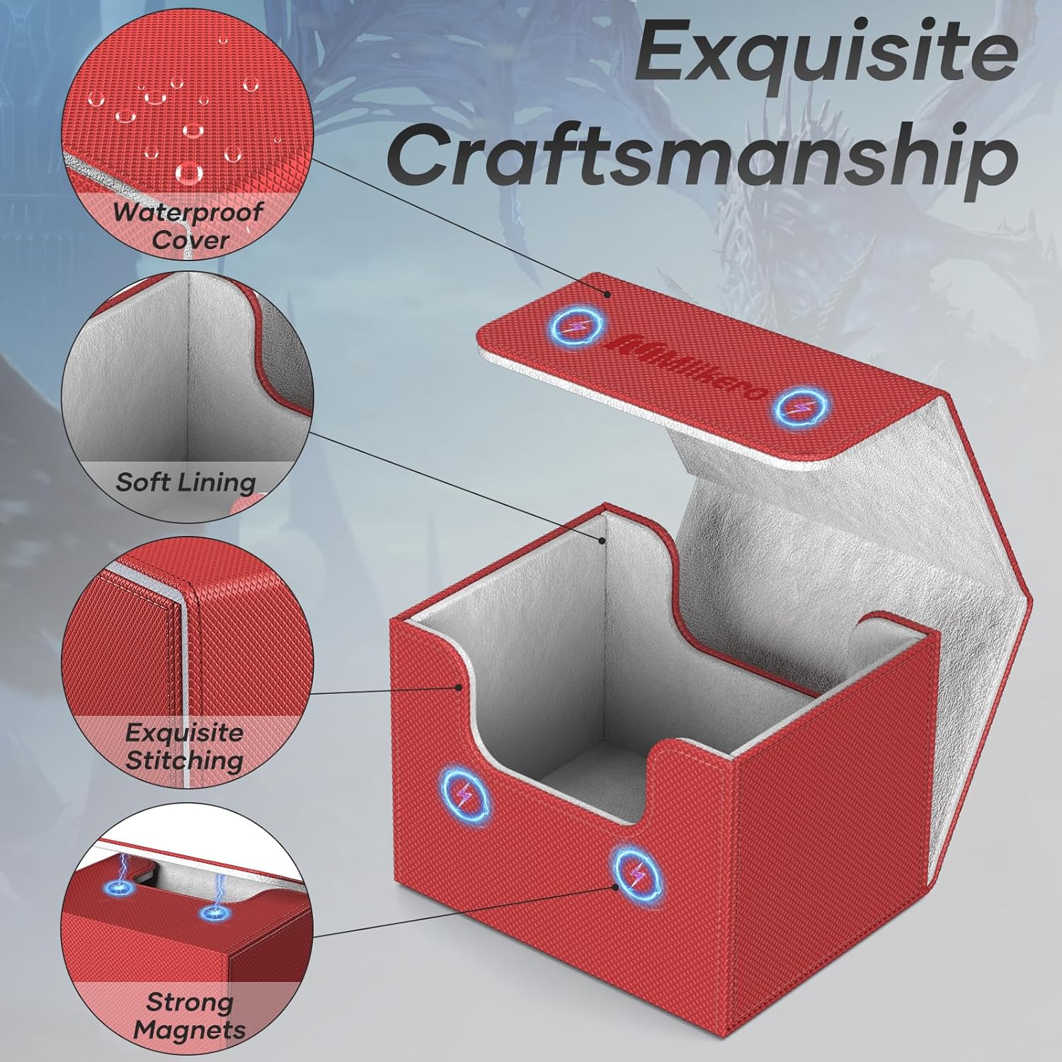 - 【Versatile Card Storage】Designed with card gamers in mind, this card deck box is compatible with a wide variety of trading cards. The deck box tcg works with MTG, PKM, TCG, helping you keep your collection organized and enhancing your gaming experience.