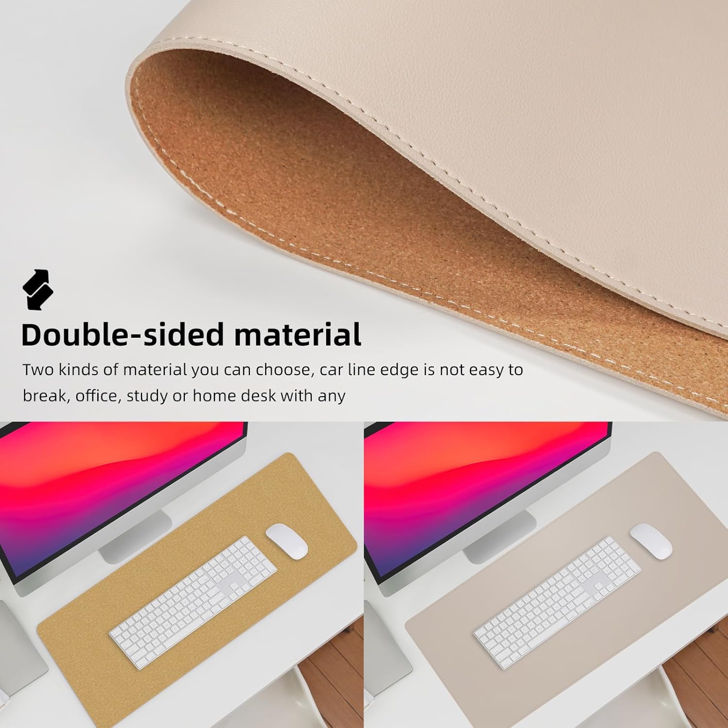 - Elevate Your Workspace: Our reversible desk pad is designed to complement any office or home desk with its premium materials and elegant black thread stitching. The natural cork base provides extra grip to keep your desk mat in place.