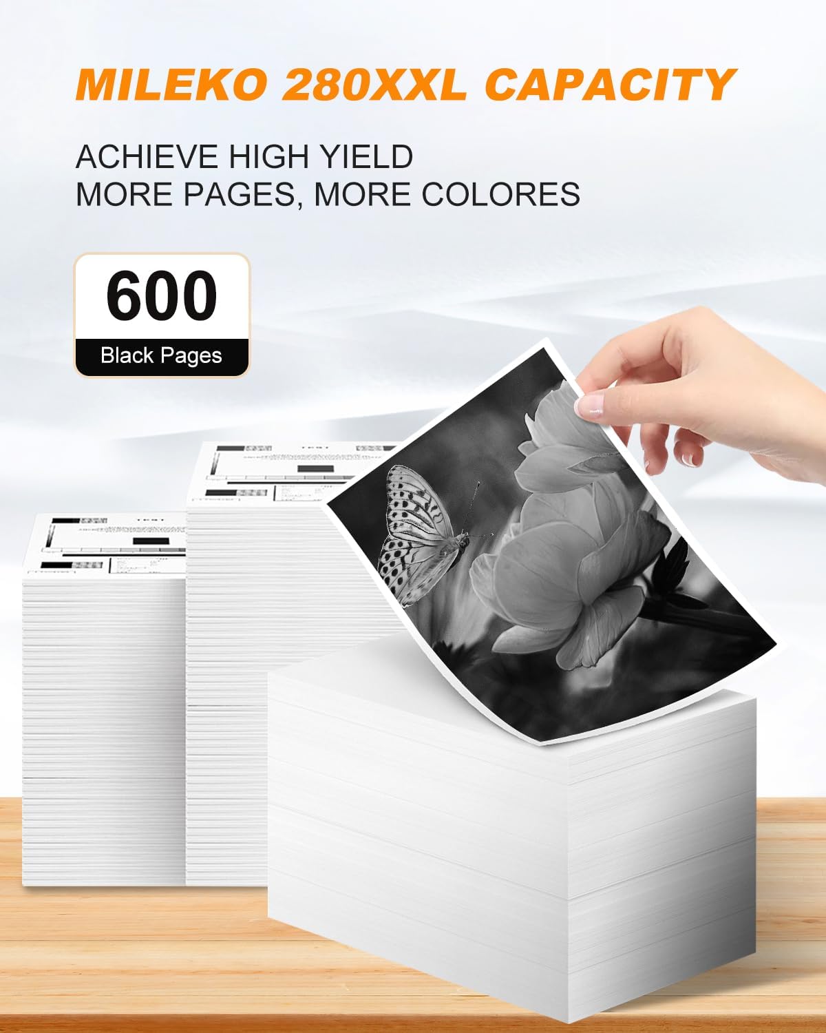 - Product Name: MILEKO 280XXL PGBK black high yield ink cartridges (Not Original) Replacement for Canon 280XXL-PGBK