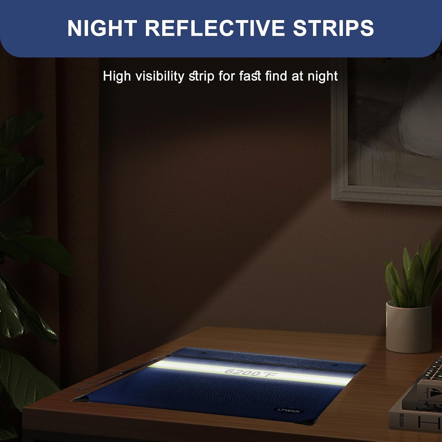 - ☔【Fireproof and Waterproof Design】This fireproof document bag is sewn with flame-retardant thread and fireproof edges to prevent flames from damaging the fireproof bag from the edges, and it has a unique double-sided two-color reflective strip, allowing you to find it clearly in the dark. The sealed waterproof zipper, combined with the flap design, can withstand the high-speed spray of the fire hose and prevent fire, heat, and smoke from entering the fireproof bag.