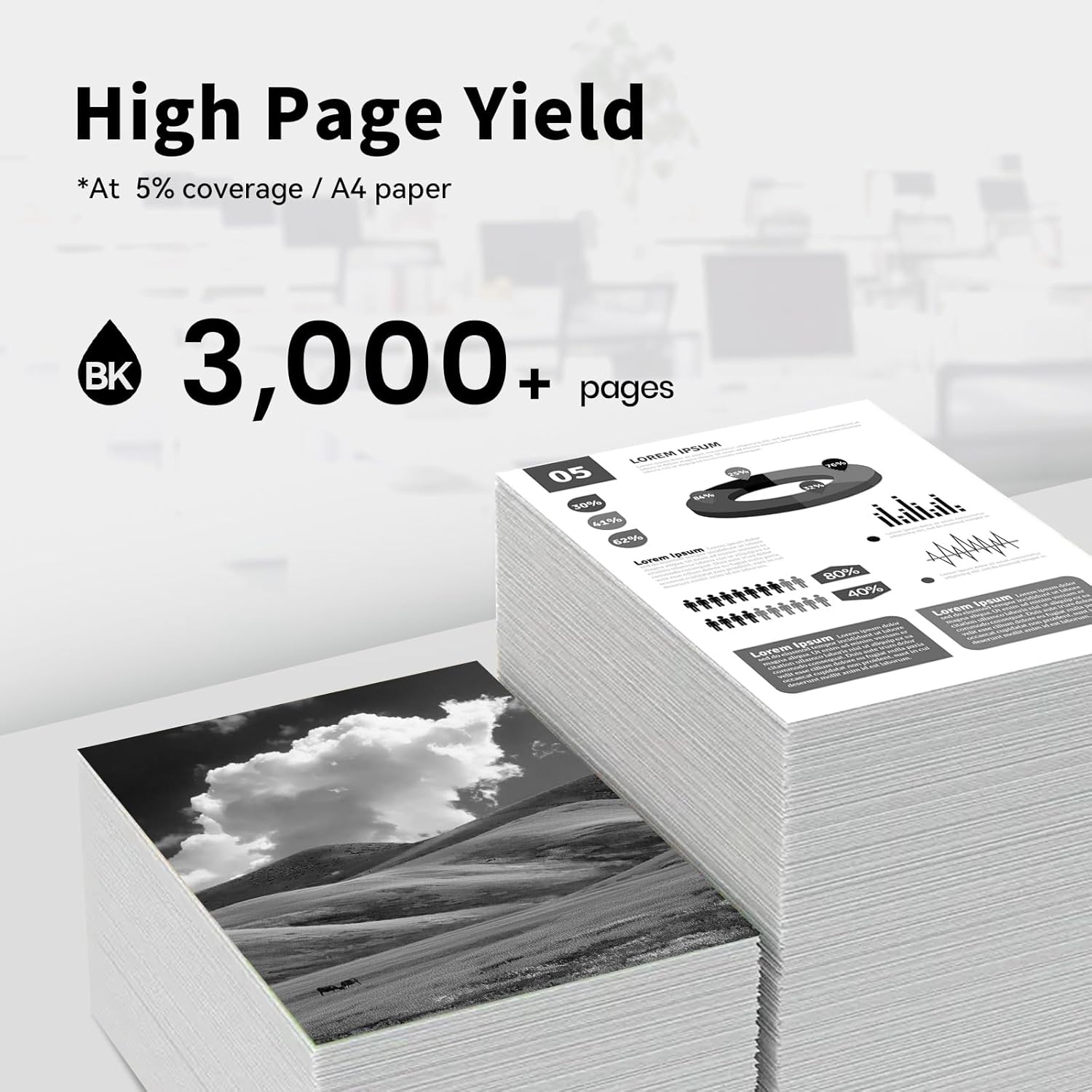 - High Page Yield: up to 3,000 pages per 55B1000 black toner at 5% coverage
