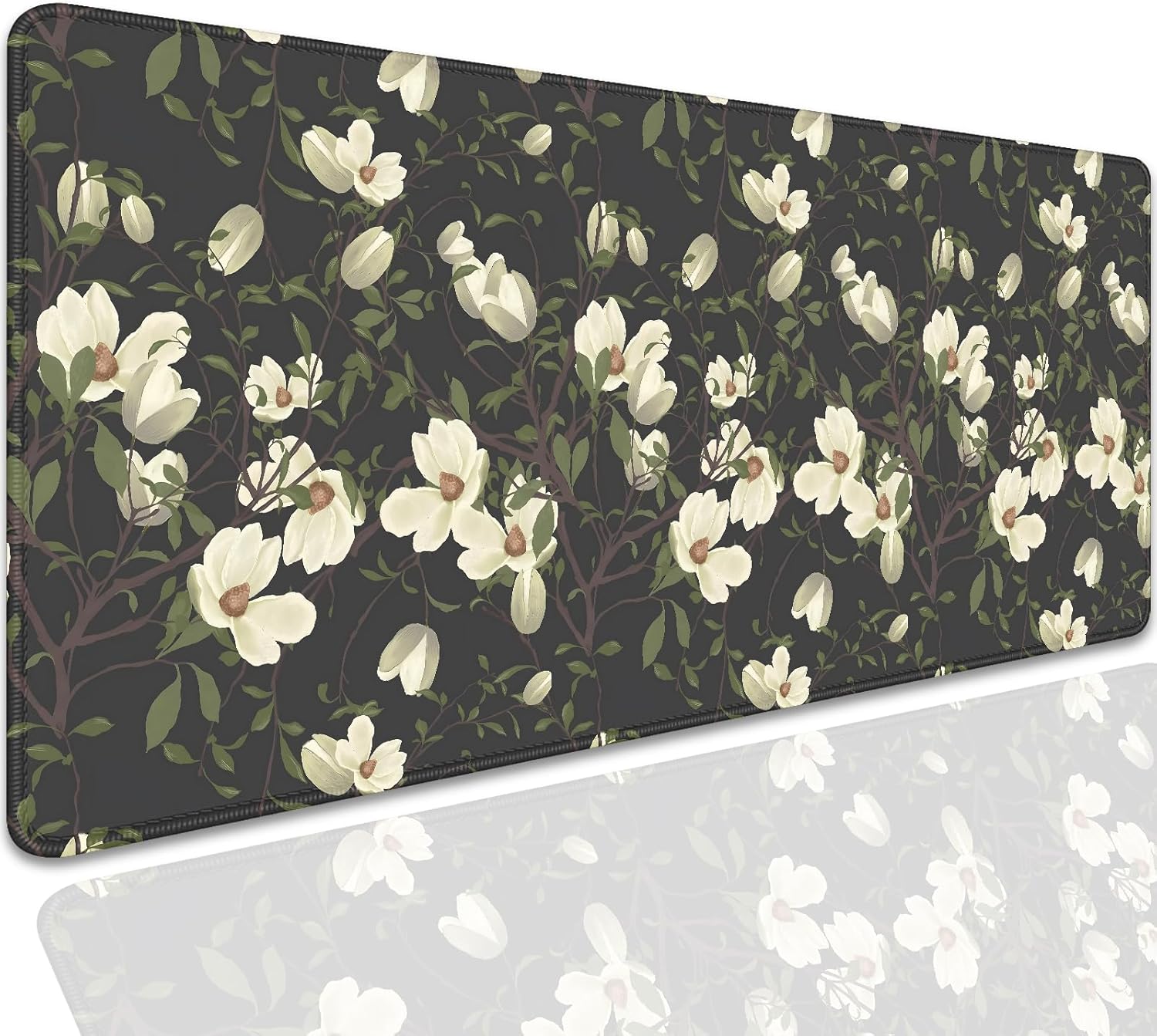 Magnolia Flowers Desk Pad Mouse Pad,Large Floral Mouse Mat with Stitched Edges,Non-Slip Rubber Base Black Mousepad for Office PC Keyboard Laptop and Home Work Desk Mat(27.5X11.8 in)