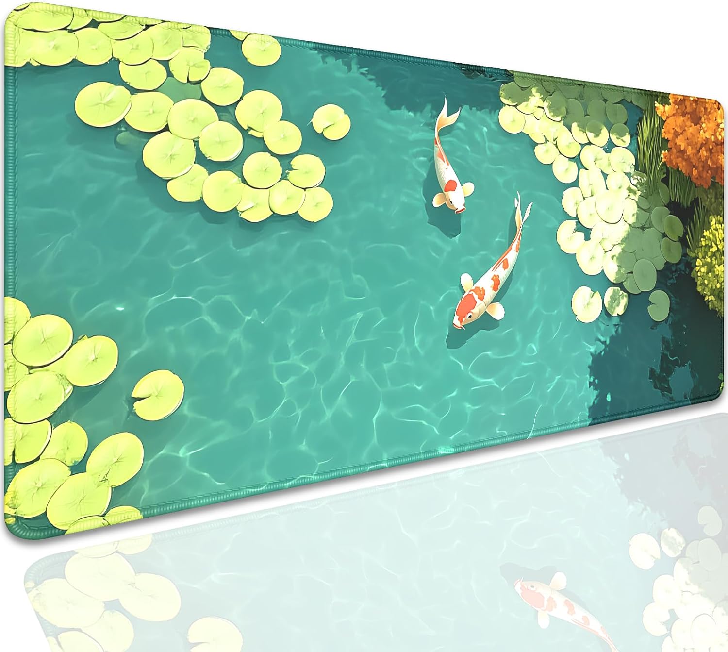 Koi Carp Fish Desk Pad Mouse Pad,Large Gaming Mouse Mat with Stitched Edges,Non-Slip Rubber Base Mousepad for Office PC Keyboard Laptop and Home Work Desk Mat(27.5X11.8 in)