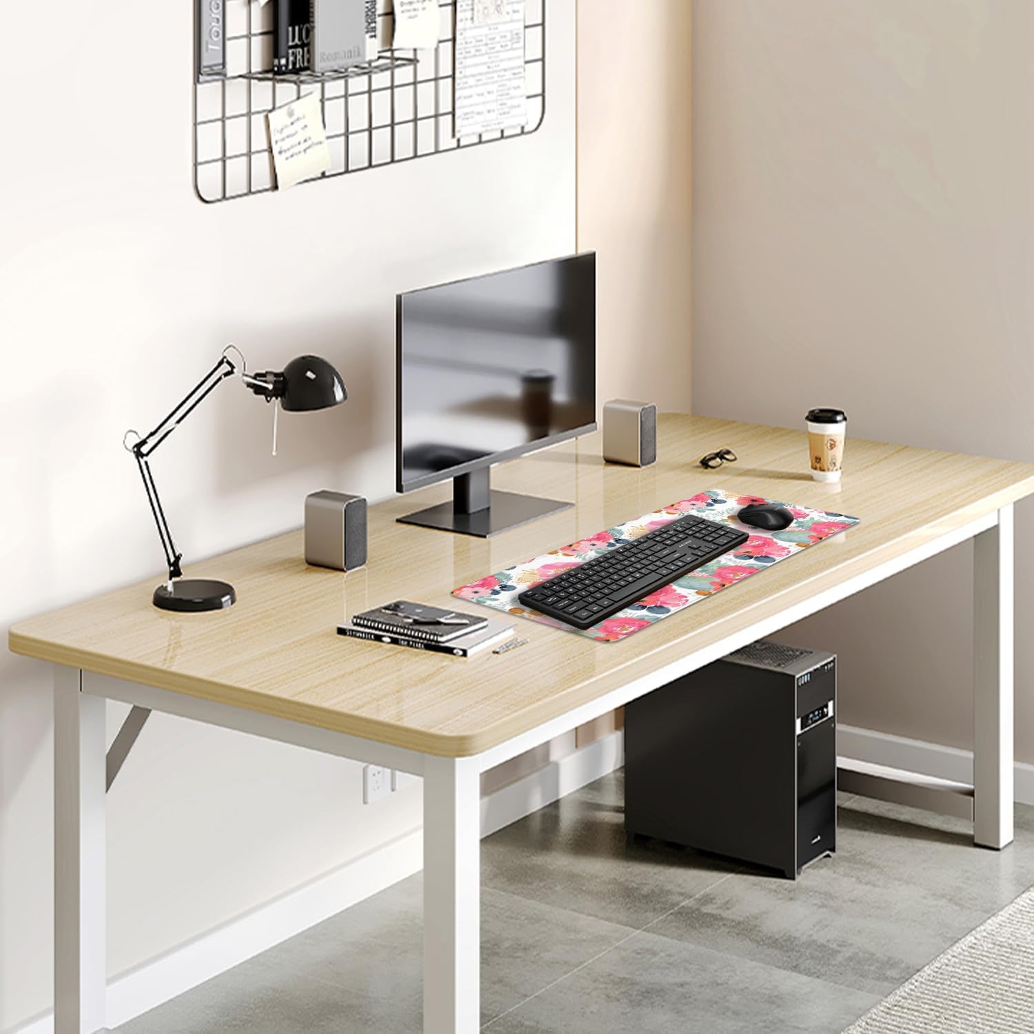 Watercolor Flowers Desk Pad Mouse Pad,Large Floral Mouse Mat with Stitched Edges,Non-Slip Rubber Base Mousepad for Office PC Keyboard Laptop and Home Work Desk Mat(27.5X11.8 in)