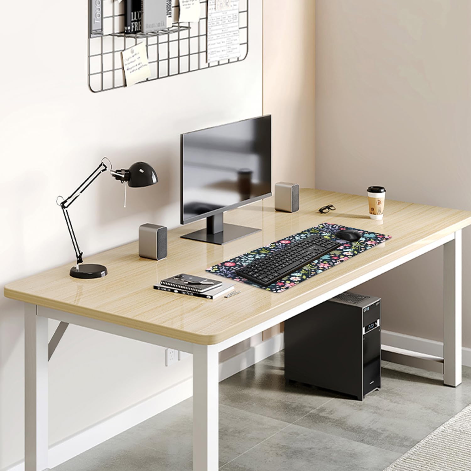 Maple Leaf and Flowers Desk Pad Mouse Pad,Large Floral Mouse Mat with Stitched Edges,Non-Slip Rubber Base Elegant Mousepad for Office PC Keyboard Laptop and Home Work Desk Mat(27.5X11.8 in)