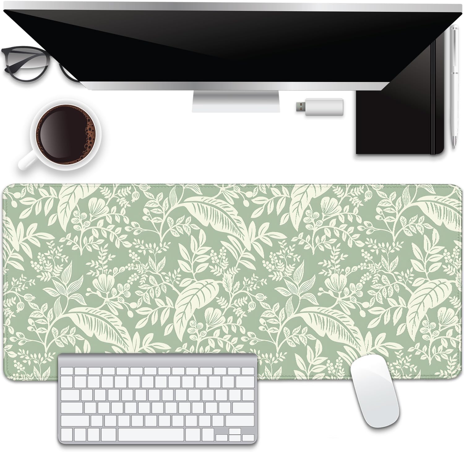 Green Plants Desk Pad Mouse Pad,Large Natural Fresh Mouse Mat with Stitched Edges,Non-Slip Rubber Base Elegant Mousepad for Office PC Keyboard Laptop and Home Work Desk Mat(27.5X11.8 in)
