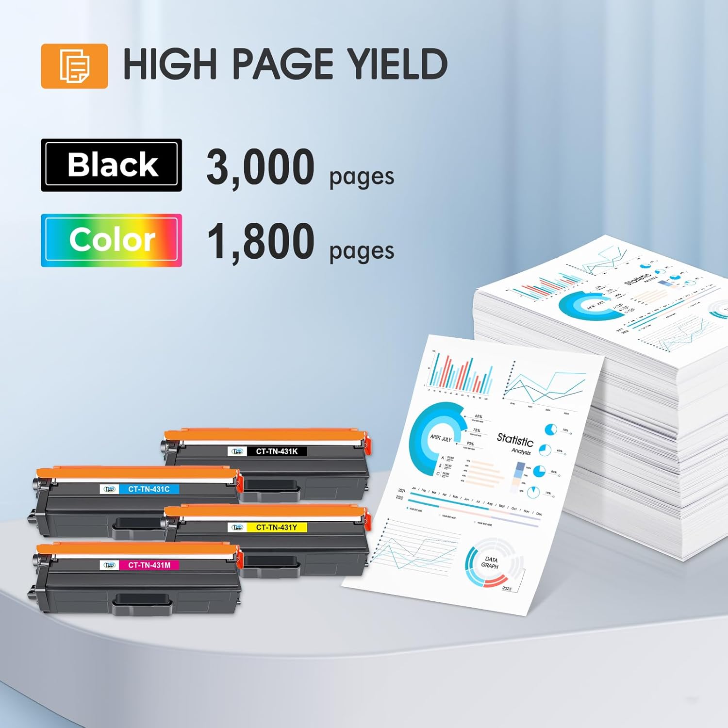 - TN-431 TN 431 TN431 toner Cartridge 4 Pack deliver superior printing results with vivid colors and clear prints