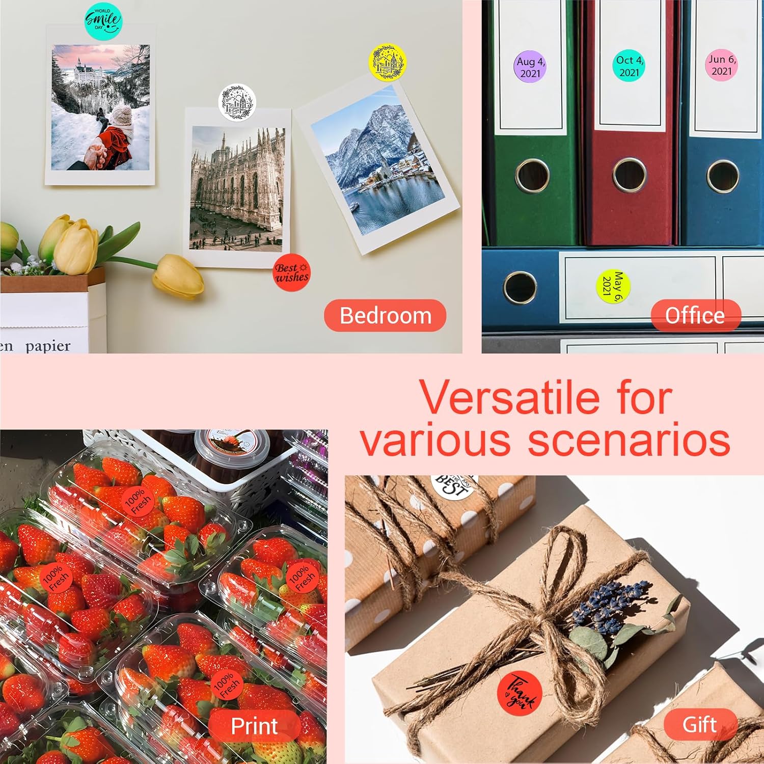 - Writable and Printable Labels: 1 inch color coding label dots allow to write messages with a pen, pencil, colored pen, whiteboard pen, etc. You can also use these colored round stickers in a thermal printer