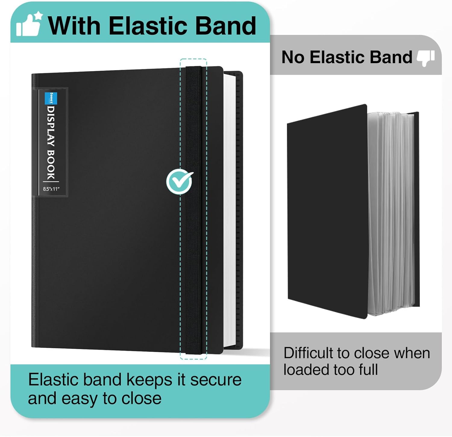 - Elastic Band for Secure Protection:Features a robust elastic band closure that keeps your portfolio folder closed and adds security to your documents. Enjoy peace of mind knowing your files are secure and won’t spill out or get damaged.