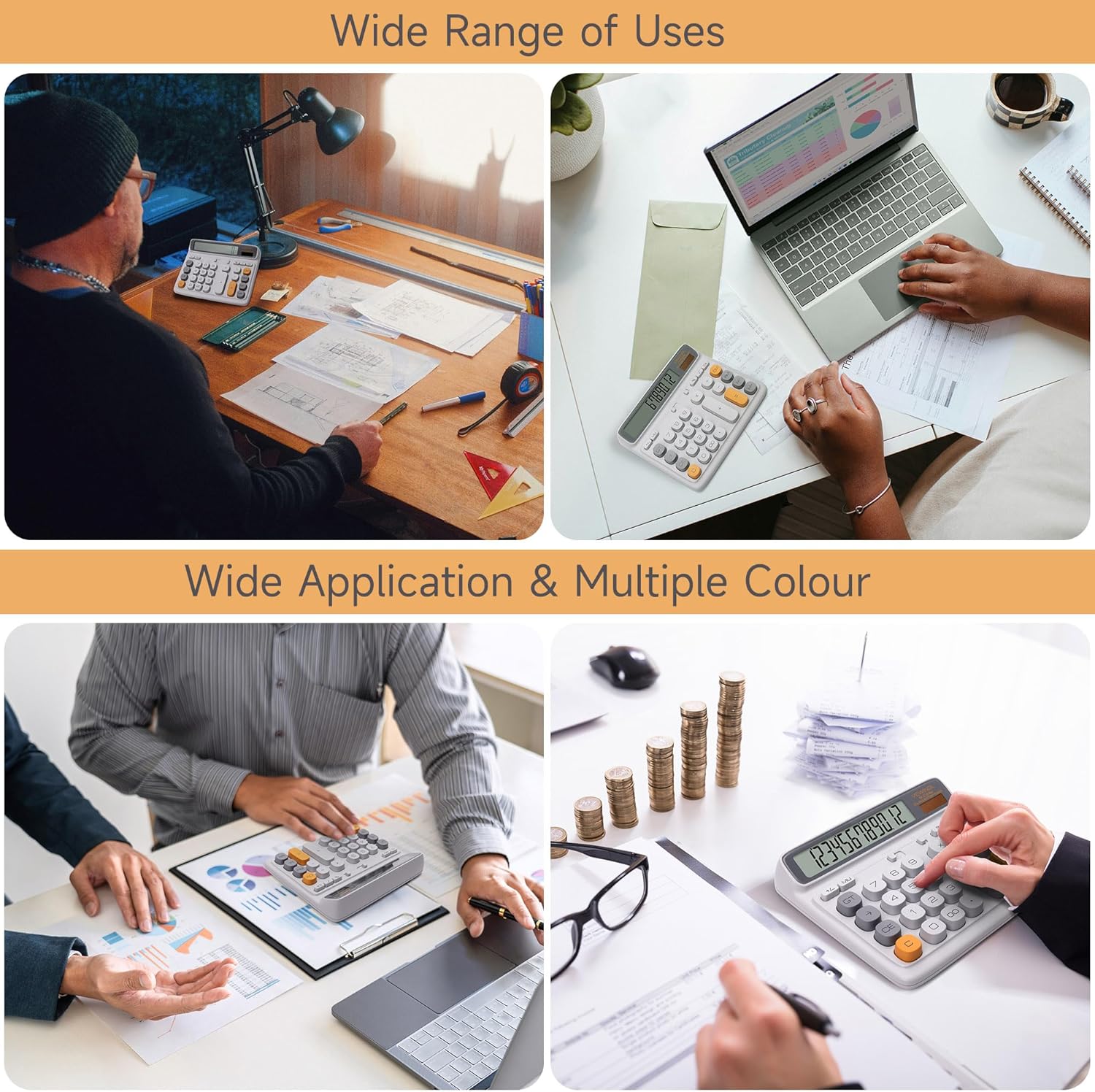 - DESKTOP OFFICE CALCULATO: This calculator is equipped with 4 non-slip feet, ensuring it stays securely on your office desk. It helps you calculate quickly, making it ideal for use by everyone in offices, homes, banks, and supermarkets.opening the box, you can also apply for a refund.