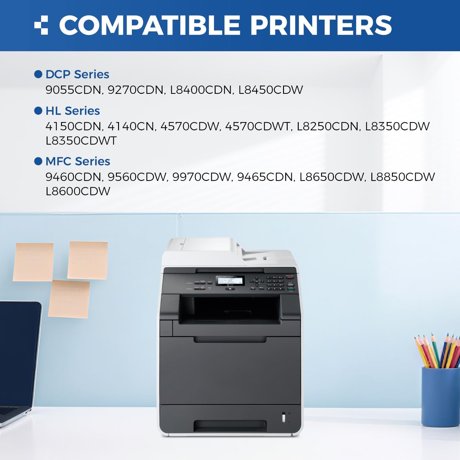 - Compatible Printer: Compatible with Brother DCP-9055CDN, DCP-9270CDN,DCP-L8400CDN, DCP-L8450CDW, HL-4150CDN, HL-4140CN, HL-4570CDW, HL-4570CDWT, HL-L8250CDN, HL-L8350CDW, HL-L8350CDWT, MFC-9460CDN, MFC-9560CDW, MFC-9970CDW, MFC-9465CDN, MFC-L8650CDW, MFC-L8850CDW, MFC-L8600CDW (Please check that your printer model matches the printer model of this toner cartridge before placing an order).