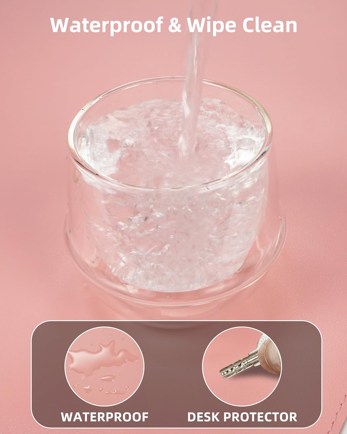 Desk Pad Mat 23.6"x13.7" - Waterproof Mouse Pad & Desk Protector, Non-Slip PU Leather for Gaming Keyboard/Mouse, Stitched Edge XL Office Desk Pad with Ergonomic Support(Pink)