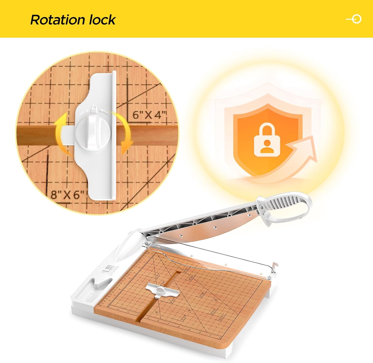 12 Inch Wood Guillotine Paper Cutter, Heavy Duty Wood Base Paper Trimmer with 32 Sheets Paper Cutting Board for Classroom, Crafting, Cardstock, Art Projects (White)