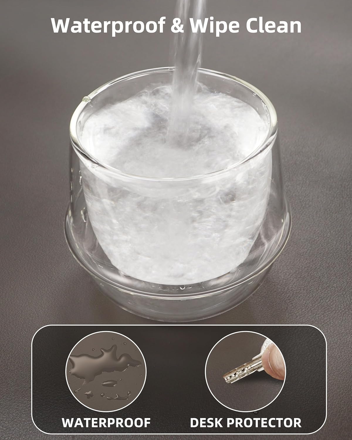 - Waterproof & Easy to Clean: Durable PU leather for the upper use side, just use cloth to wipe it, very easy to clean, wet cloth would be prefer if there are too much dirt on the desk protectors.