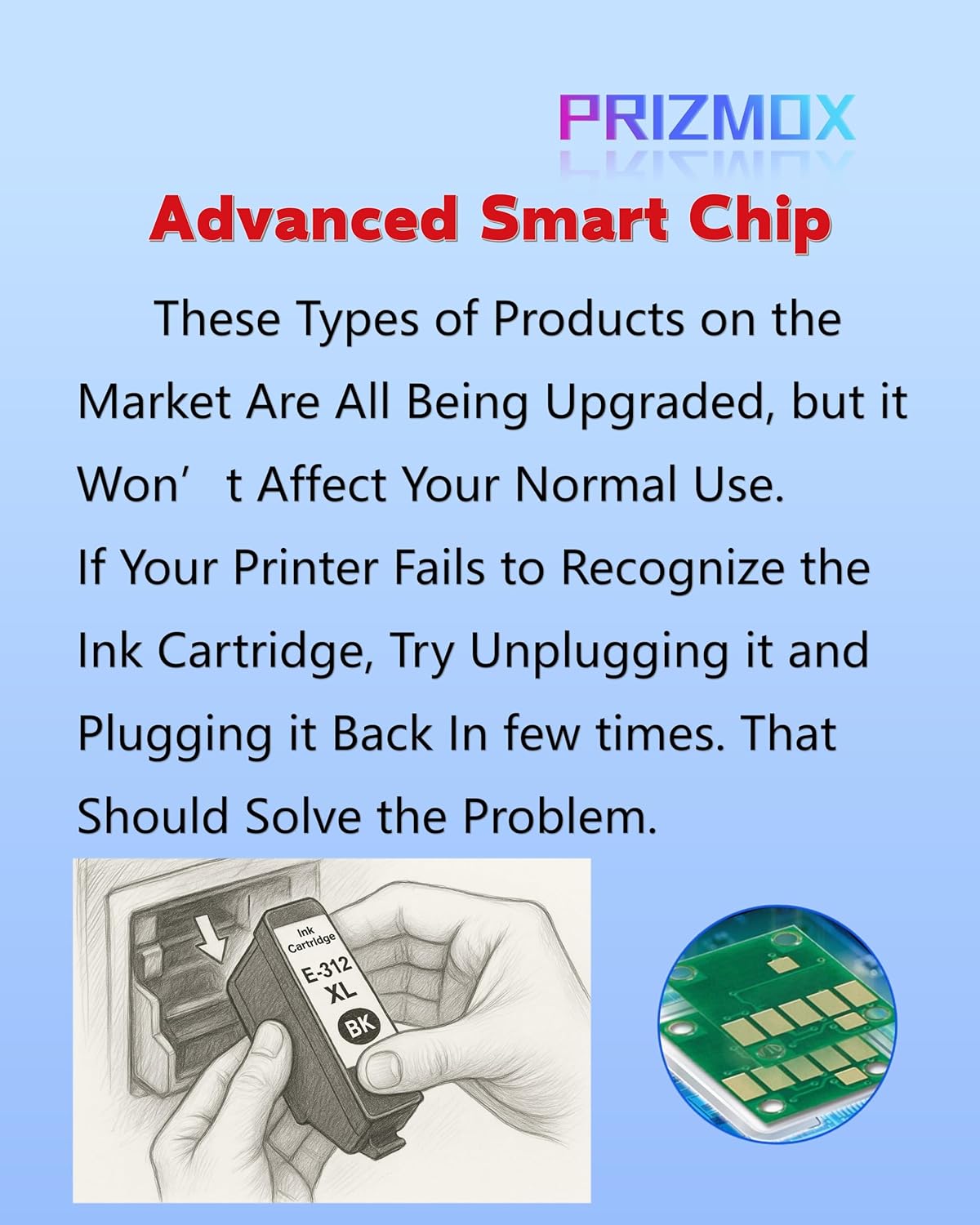 - Package Contents: 6 Pack High Yield Remanufactured 312XL 314XL T312 T314 Ink Cartridge with NEW Updated Chip( 1x 312XL Black ,1x 312XL Cyan ,1x 312XL Magenta ,1x 312XL Yellow ,1x 314XL Red ,1x 314XL Grey )