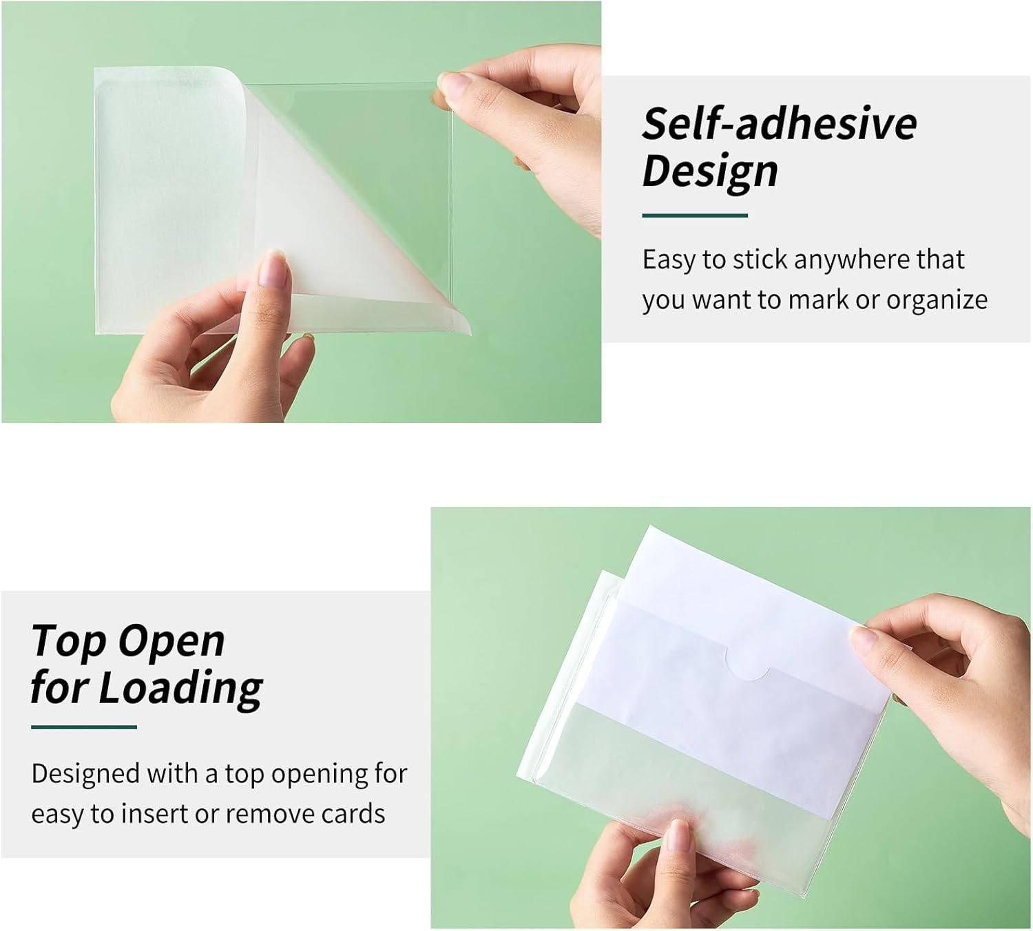 52 Pack Clear Adhesive 3" x 5" Index Card Pockets with Top Open, Plastic Card Sleeves Index Card Holder for Organizing Storage Bins, Library Cards, Notes, Drawer