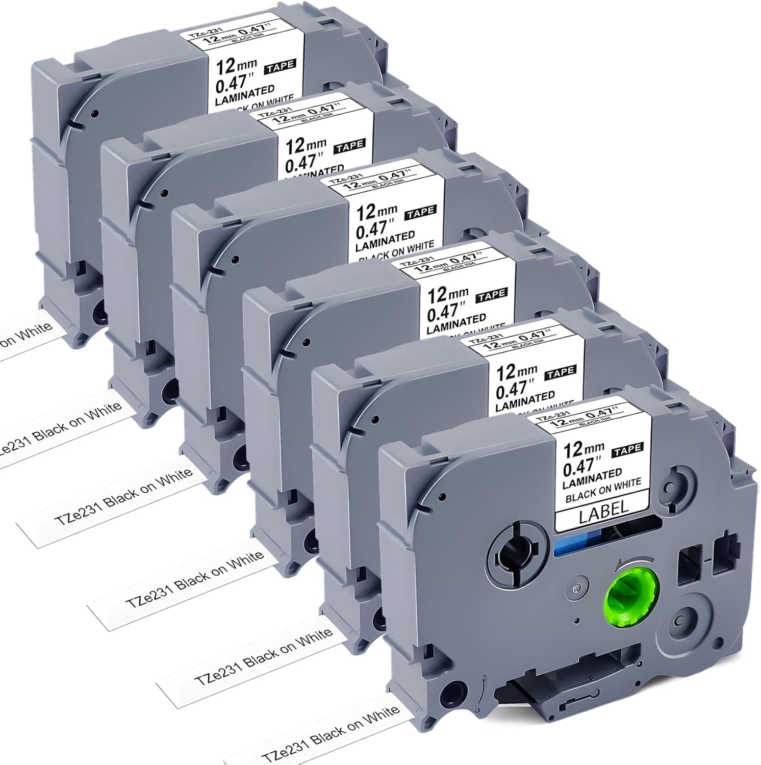 - 【Pack information】6-Pack TZe-231 12mm Compatible with Brother Label Maker Tape; Colour: Black Text Print on White; Size: Width 1/2 inch (12mm), Length 26.2' (8m) each TZe label maker tape; Model: Replace for Brother P Touch TZe-231 TZe231 TZe231s TZ231 TZc-231 label tape