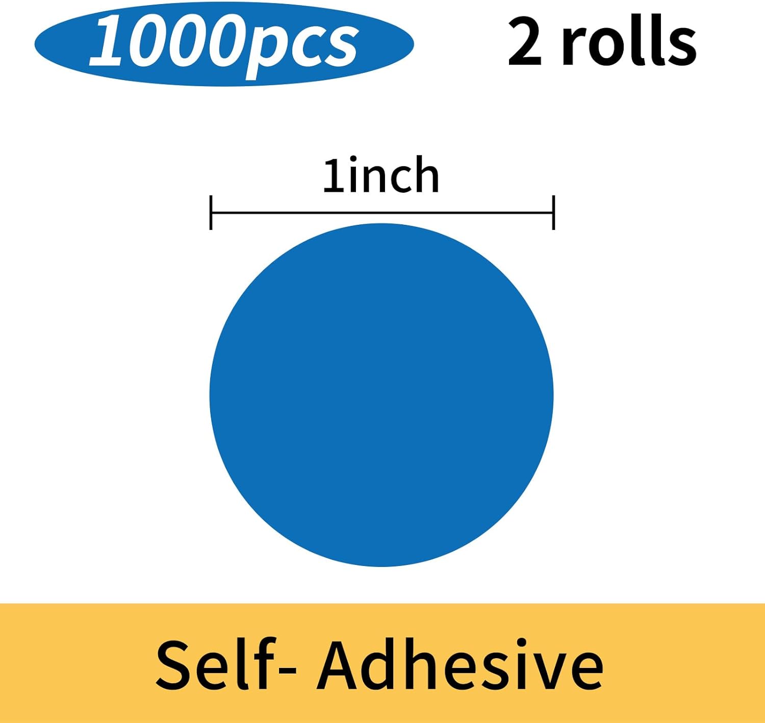 STARLIBOO Colored Dot Stickers, 1 Inch Circle Color Code Label, Blue Waterproof Garage Sale Stickers, Yard Sale Price Labels (2 Rolls, 1000Pcs)