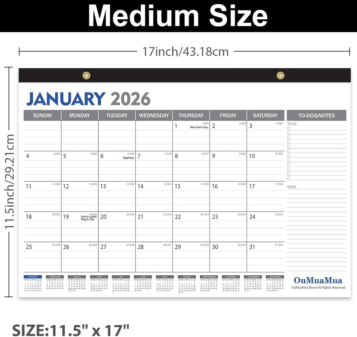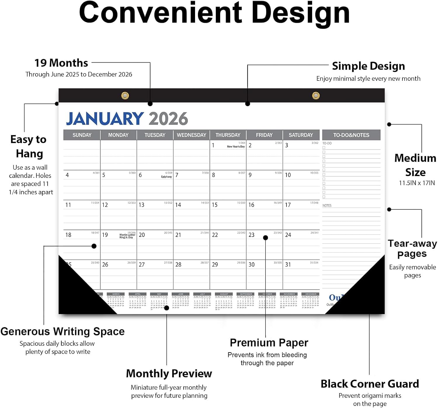 OuMuaMua Desk Calendar 2025-19 Months Desktop Wall Calendar 17 x 11.5 Inches from Jun. 2025 to Dec. 2026 with Julian Date To-do & Notes for School Home Office Planning & Organizing