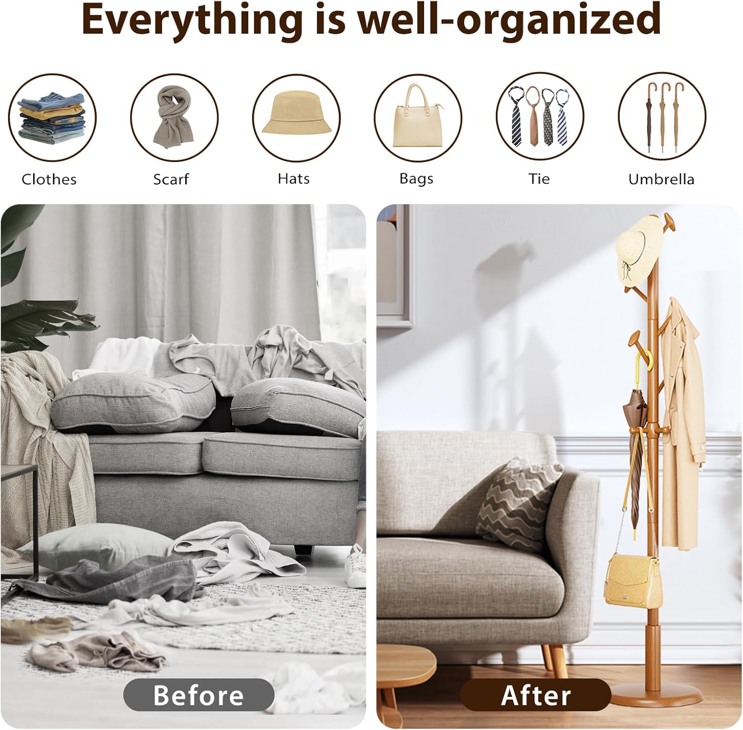 - Easy Installation - Long-Lasting: Our natural solid wood coat rack comes with detailed installation tools and instructions for quick and easy assembly, making it a simple and fun DIY project. Adjustable height also suitable for children's rooms