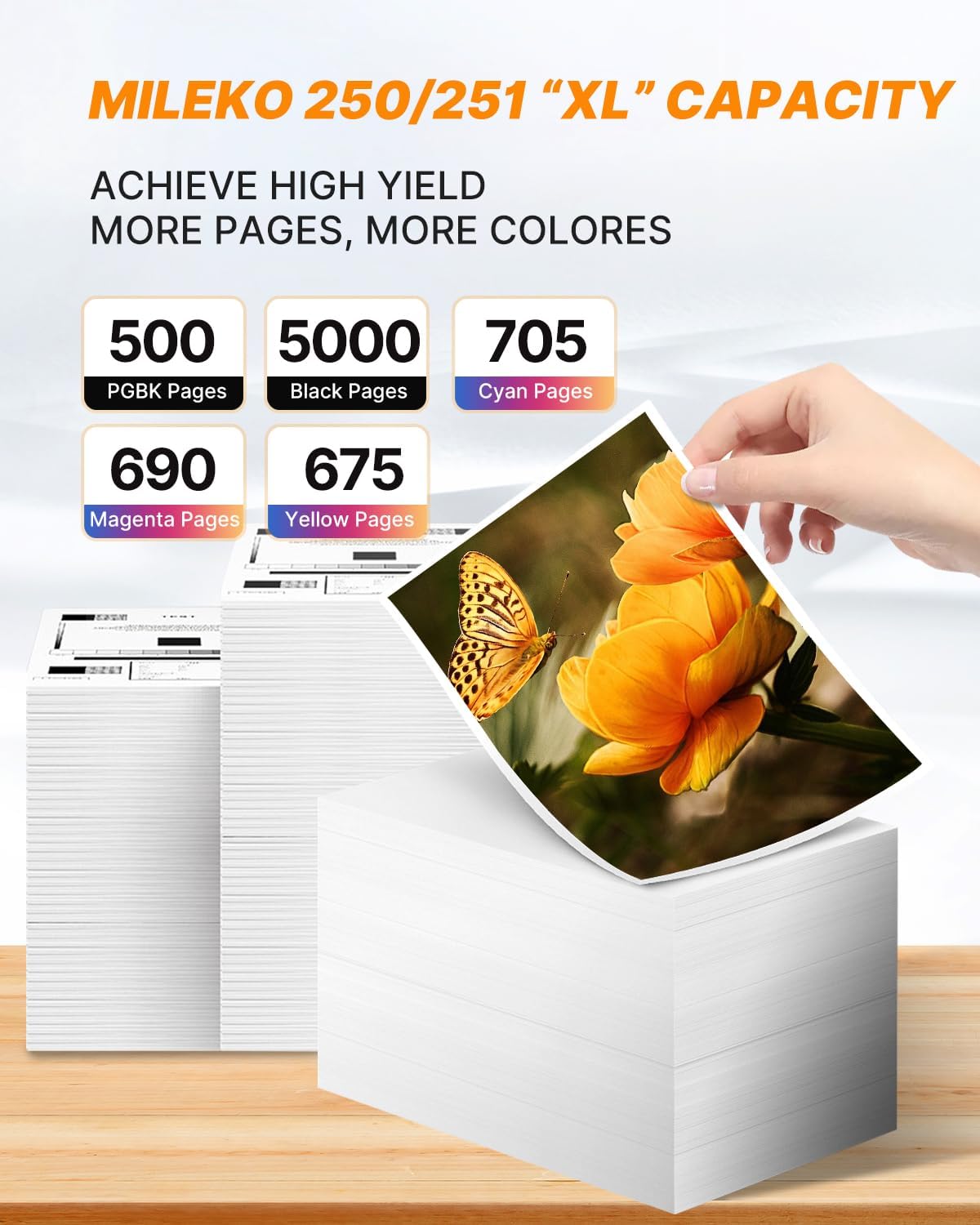 - MILEKO for canon 250 and 251 ink cartridges for canon mx922 printer ink cartridges provide clear and vibrant printing, Save time by avoiding common printing problems such as streaks, smudges, and leaking.