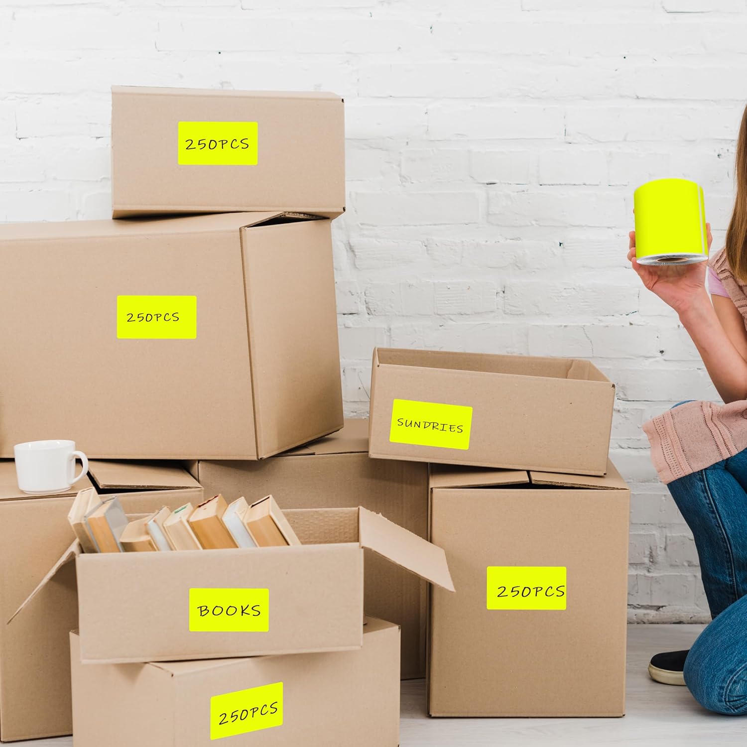 3 x 5 Inch 250Pcs Rectangle Color Coding Stickers,Strong Adhesion Easy to Write Label for Moving,Box Organization,Inventory,Business,Fluorescent Yellow